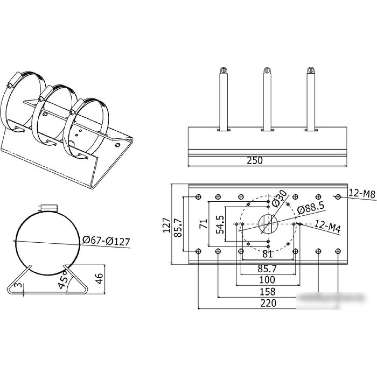 на штангу кронштейн для камер видеонаблюдения, цвет белый