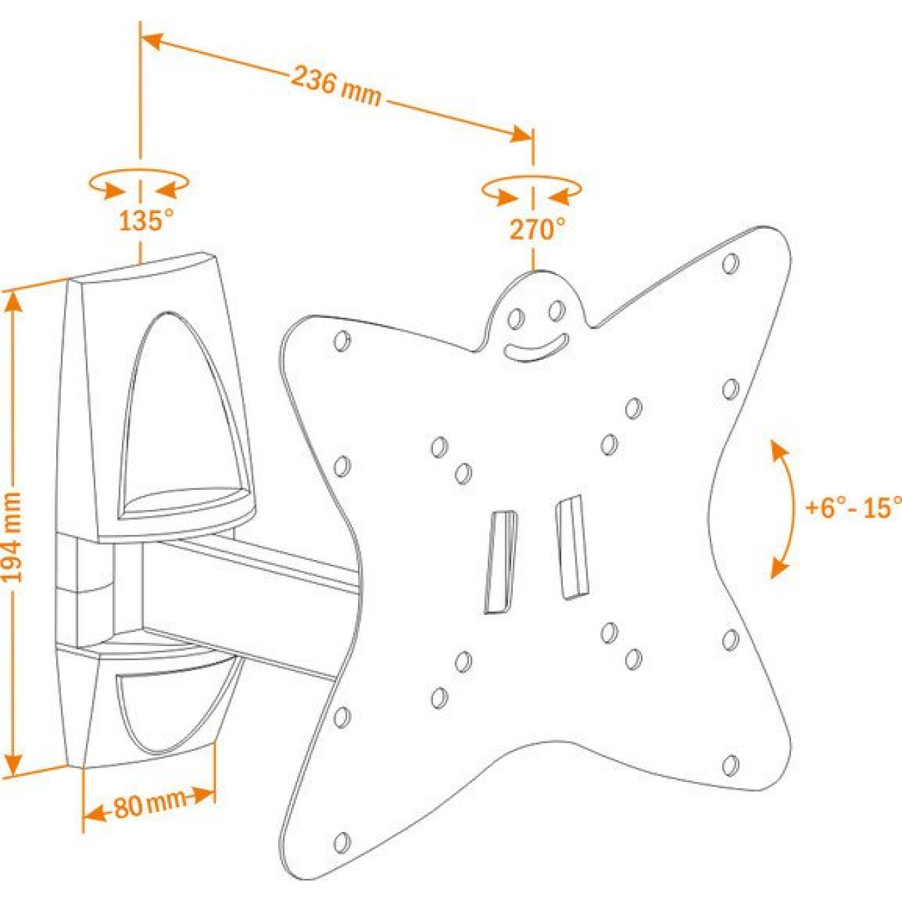 настенный кронштейн для ЖК-телевизора/для плазменного телевизора 20-37", наклон 15°, цвет черный