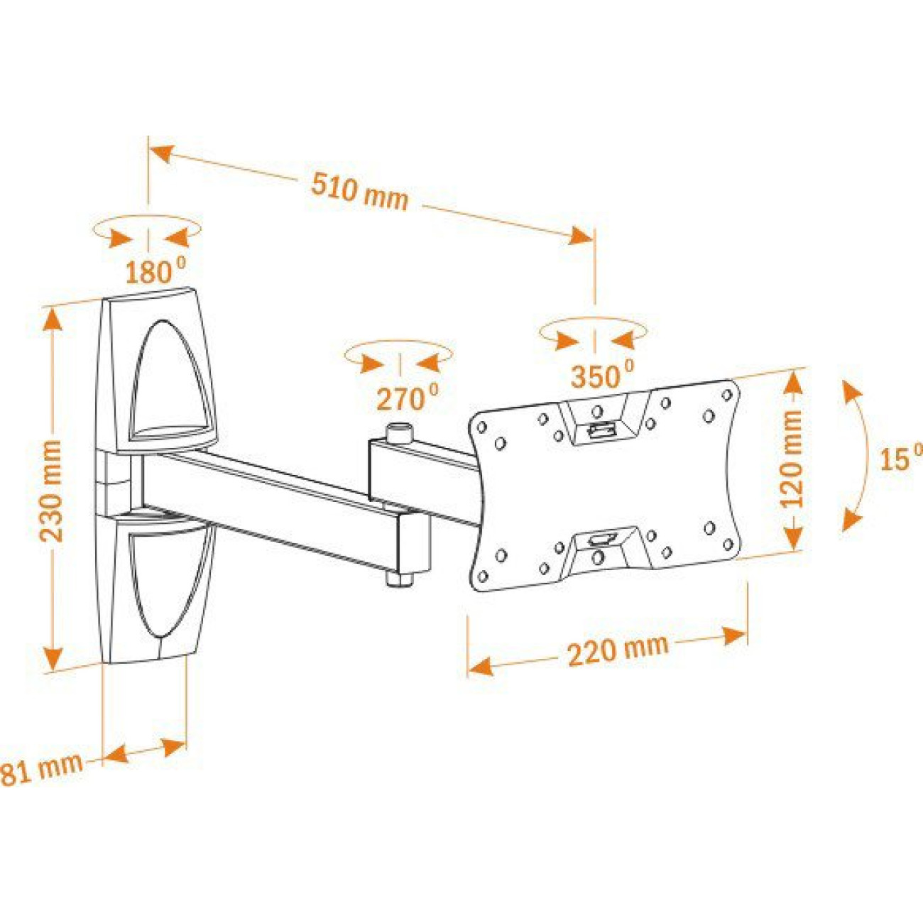настенный кронштейн для ЖК-телевизора 19-32", наклон 15°, цвет черный