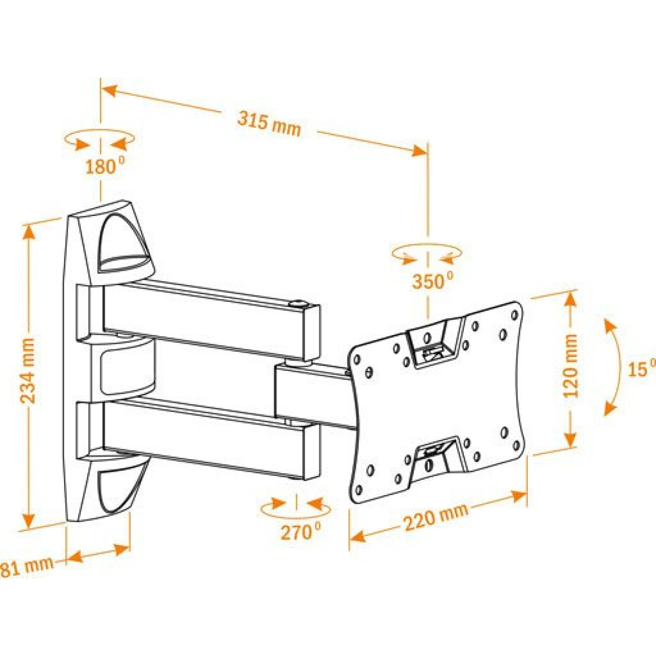 настенный кронштейн для ЖК-телевизора/для плазменного телевизора 19-32", наклон 20°, поворот 350°, цвет черный