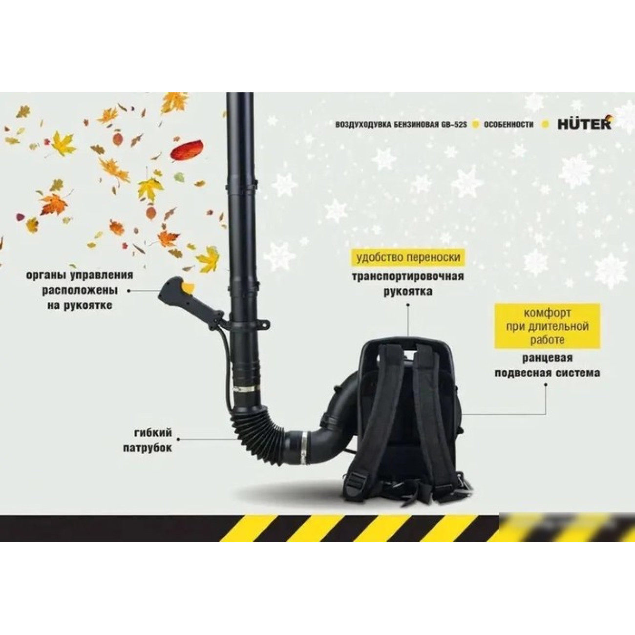 Основные характеристики Ранцевая воздуходувка Huter GB-52S