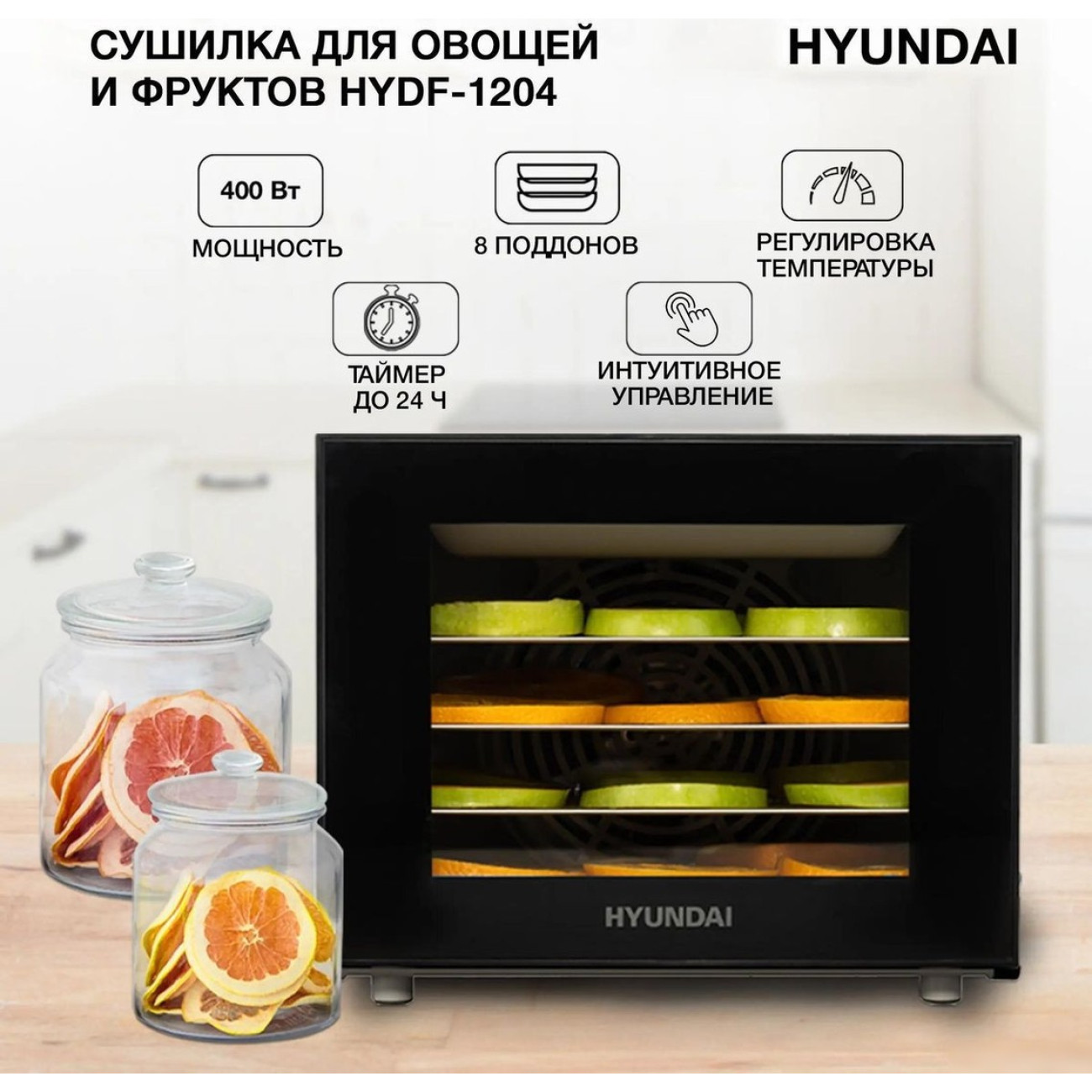 Описание Сушилка для овощей и фруктов Hyundai HYFD-1204