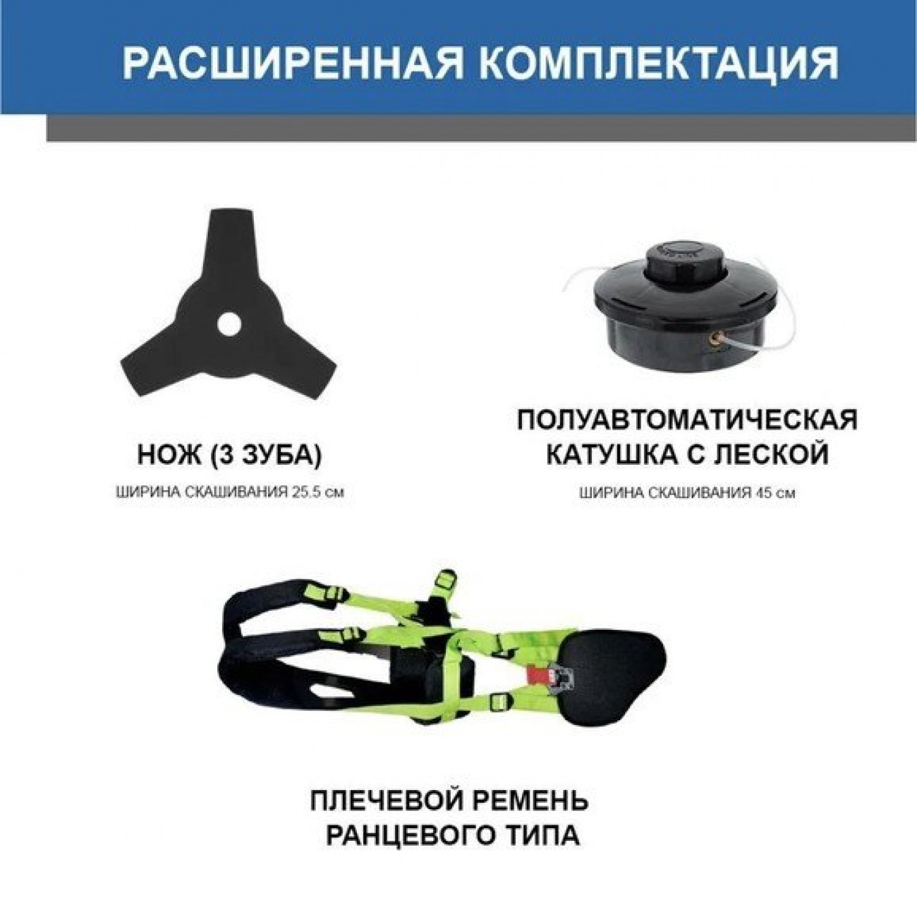 бензиновый, двухтактный, 1300 Вт, оснастка: леска+металлический нож, ширина скашивания: 25.5-45 см, легкий пуск, 8.9 кг