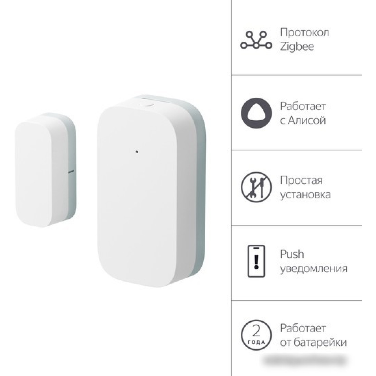 датчик открытия дверей/окон, соединение ZigBee, управление через Яндекс Алиса, размещение внутри помещения