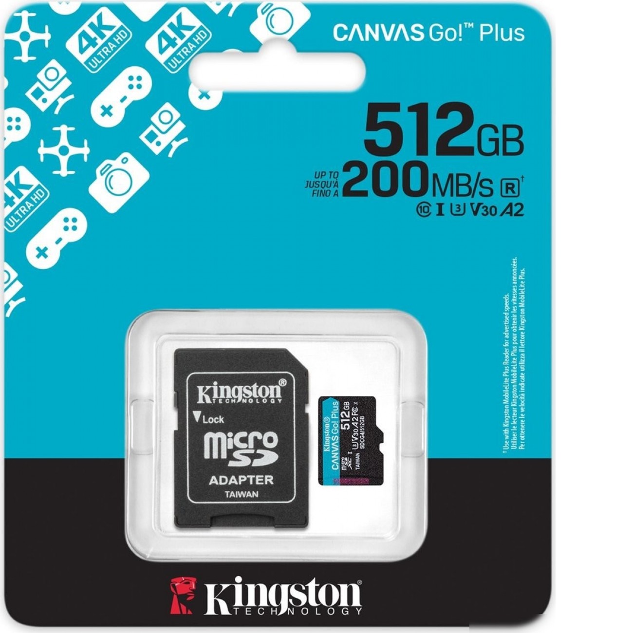 Основные характеристики Карта памяти Kingston Canvas Go! microSDXC 512GB SDCG4/512GB (с адаптером)