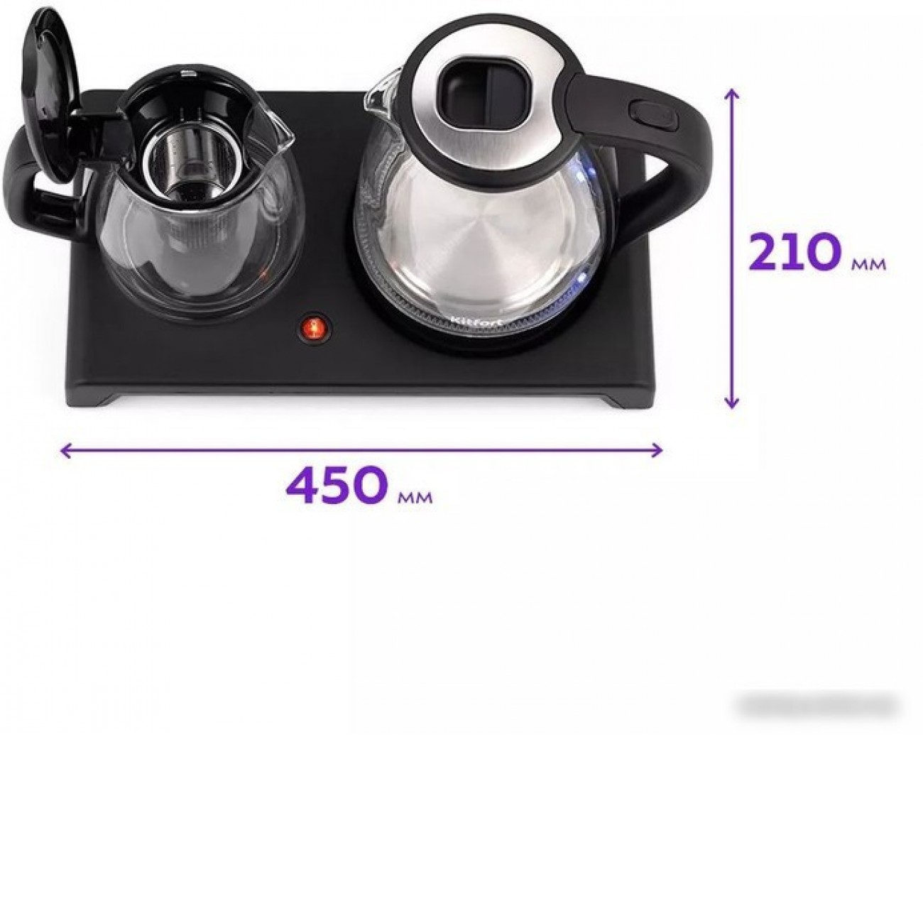 1500 Вт, объем 2 л, заваривание чая, подсветка, цвет прозрачный/черный