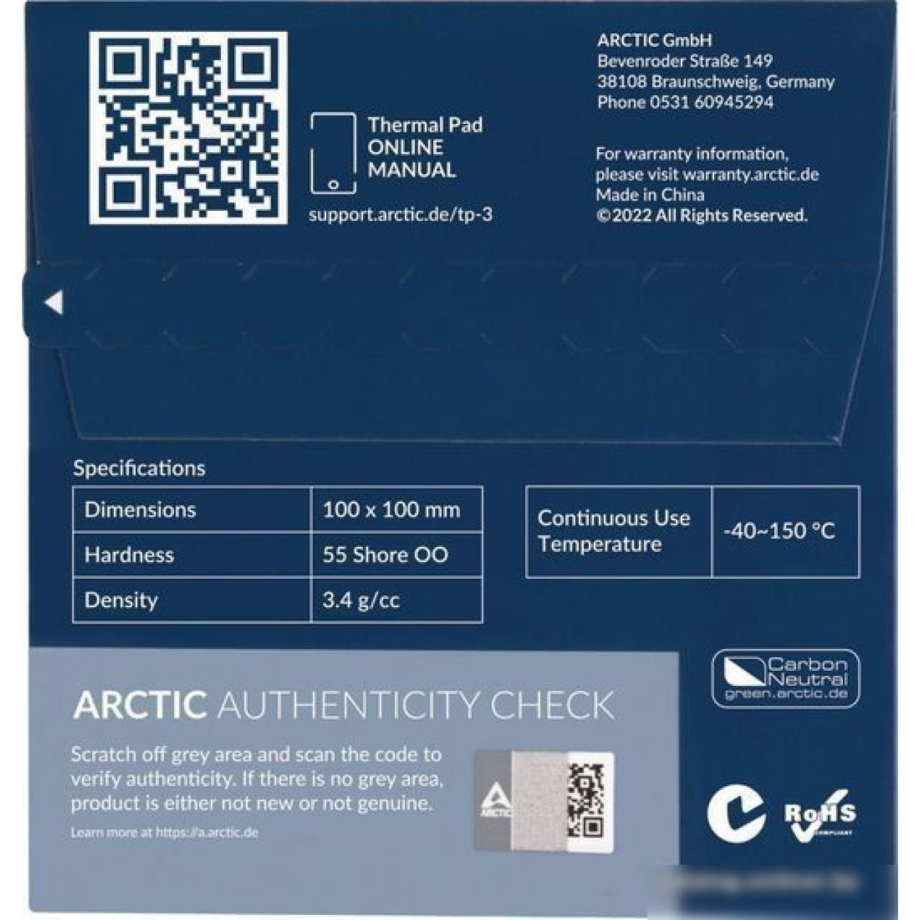 Описание Термопрокладка Arctic TP-3 100x100x1.5 мм ACTPD00054A