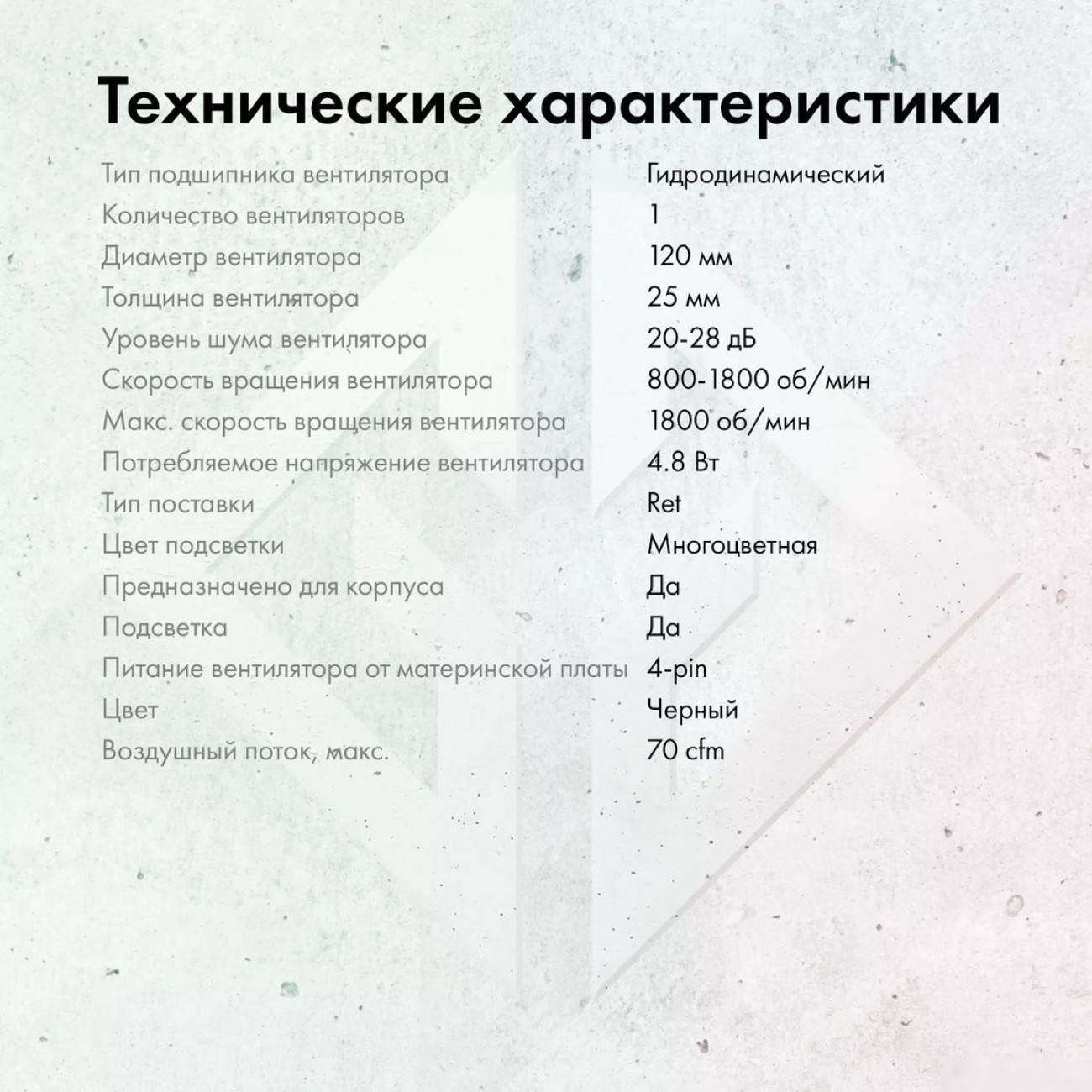 высота 25 мм, макс. шум 28 дБ, вентилятор 120 мм, 1800 об/мин, PWM, подшипник гидродинамический (FDB), ARGB подсветка