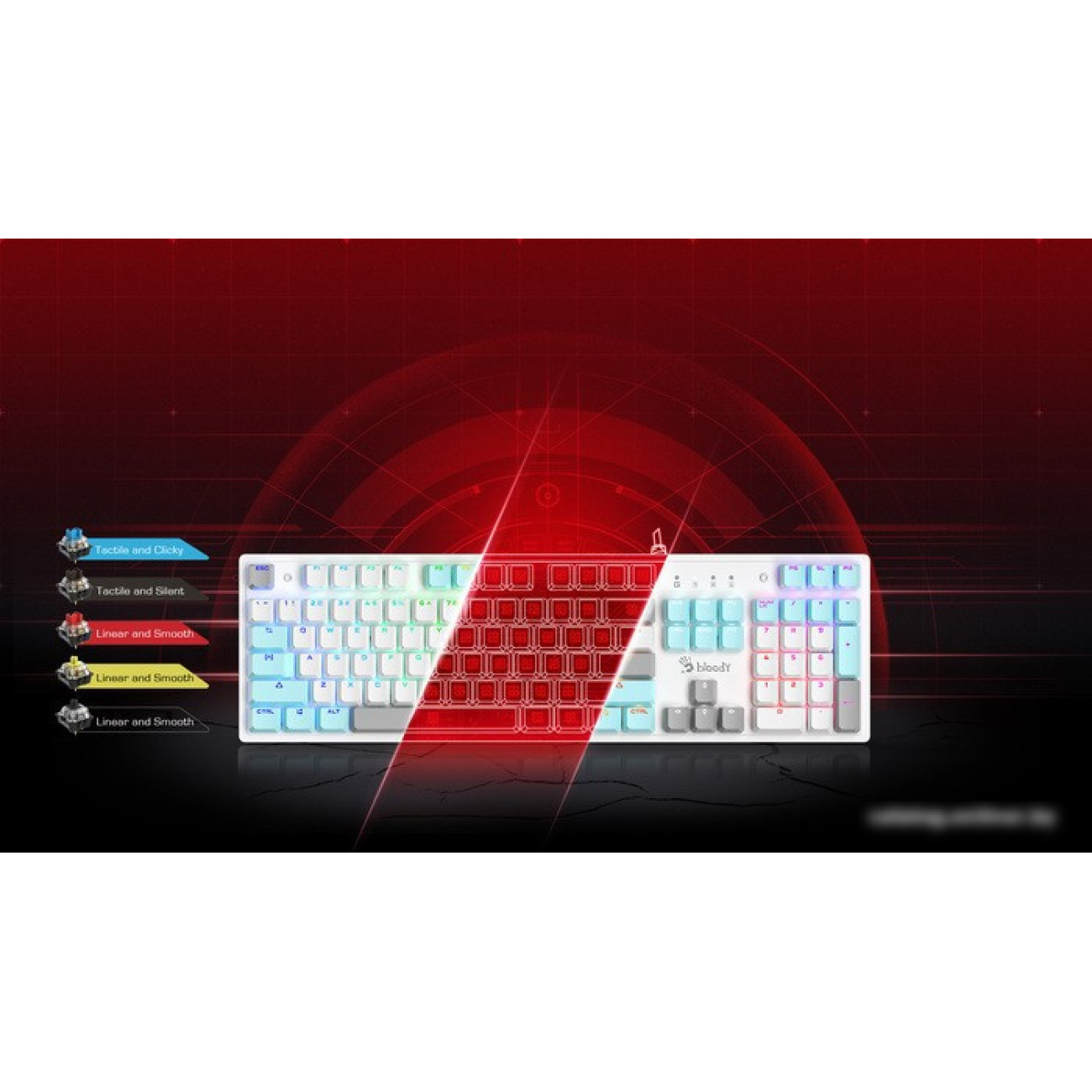 игровая для ПК, механическая, Bloody BLMS Red, ход линейный, пластик, интерфейс подключения - USB, подсветка, цвет белый