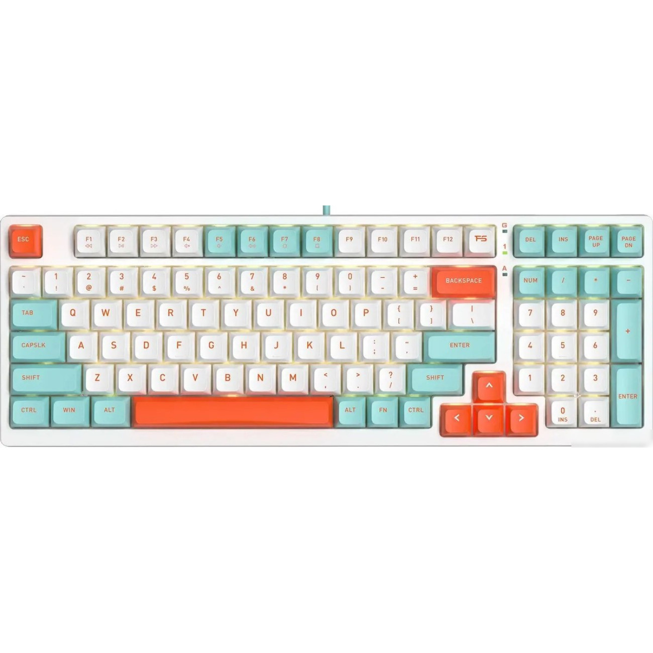 игровая для ПК/для компьютеров Apple, механическая, A4Tech FS Yellow, ход линейный/тихие, пластик, интерфейс подключения - USB-A, цвет белый/бирюзовый