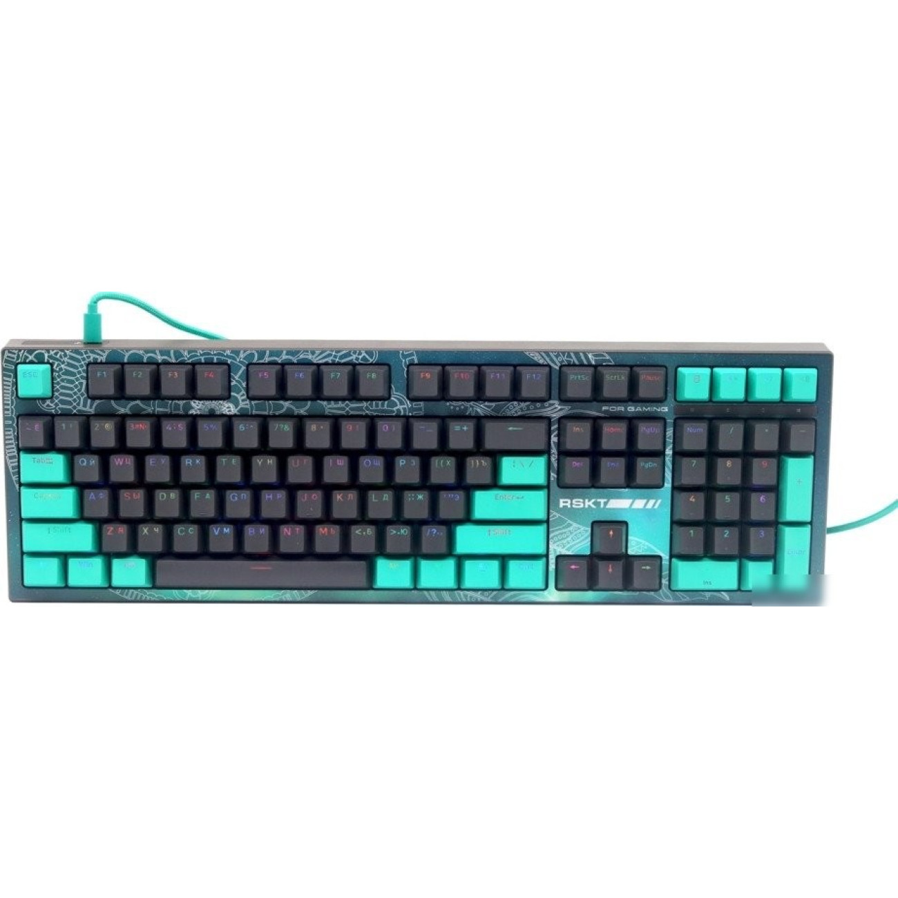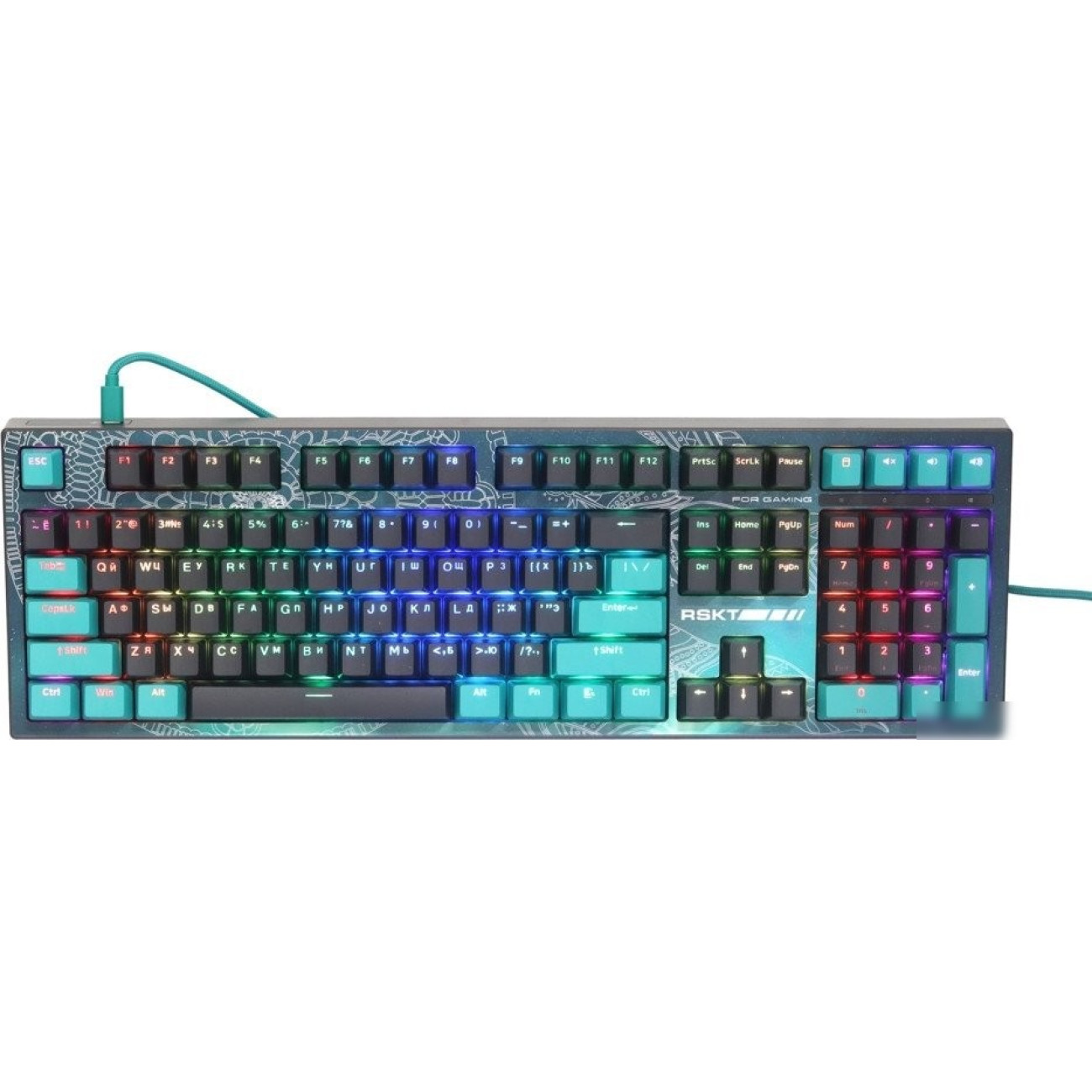игровая для ПК, механическая, Raskat Custom White, ход тактильный, пластик, интерфейс подключения - USB-A, кириллица: да, цвет черный/бирюзовый