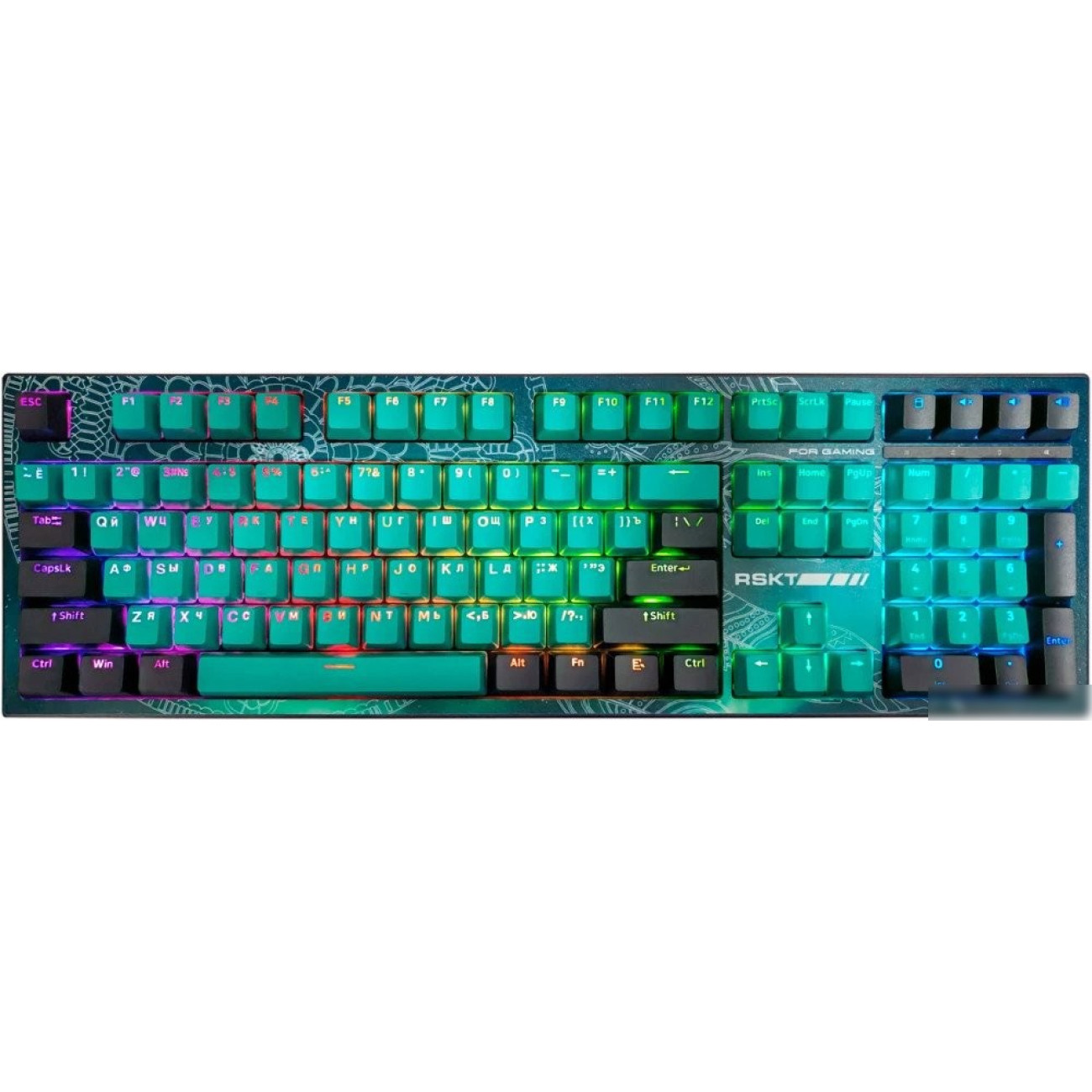 игровая для ПК, механическая, Raskat Custom White, ход тактильный, пластик, интерфейс подключения - USB-A, кириллица: да, цвет черный/бирюзовый