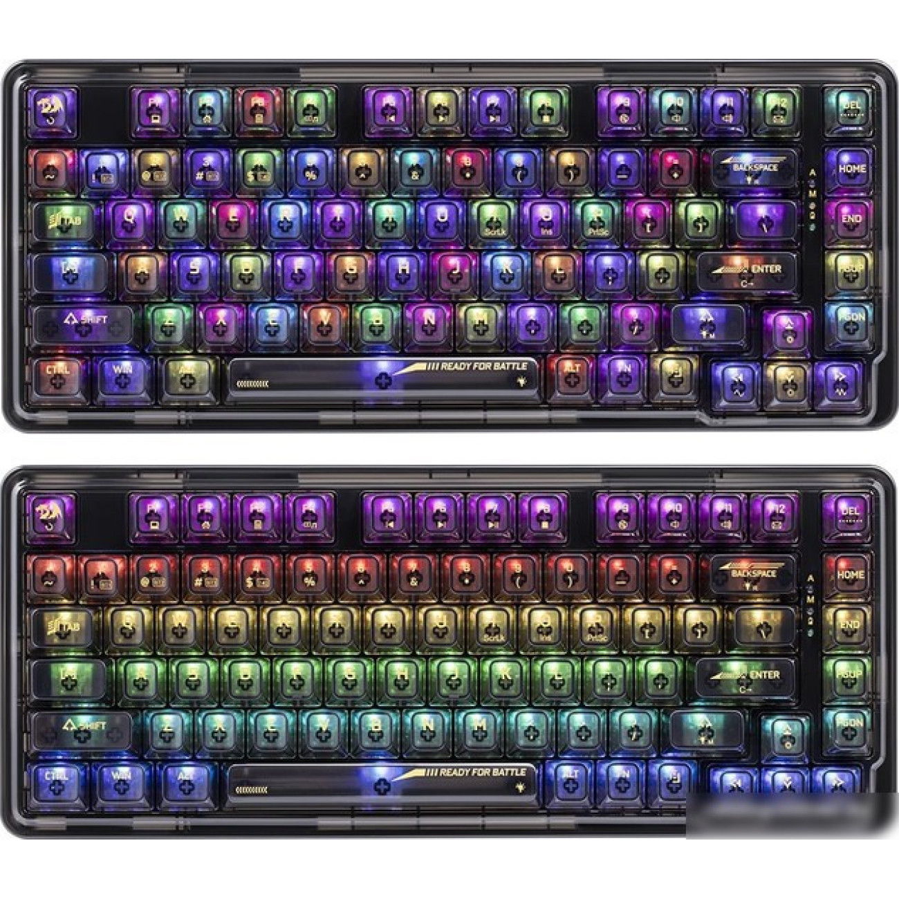 игровая для ПК, механическая, Redragon Ice, пластик, интерфейс подключения - USB-A/радио/Bluetooth, цвет черный/прозрачный