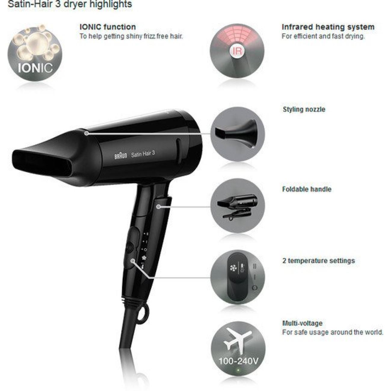 Основные характеристики Фен Braun Satin-Hair 3 (HD 350)