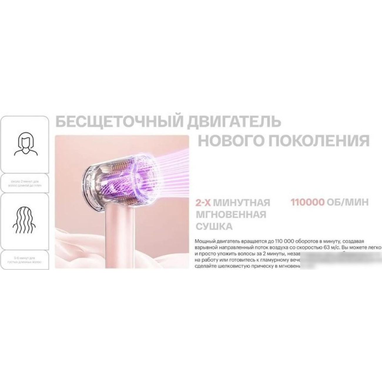 1600 Вт, ионизация, термодатчик, независимая регулировка температуры, шнур 2.5 м, розовый