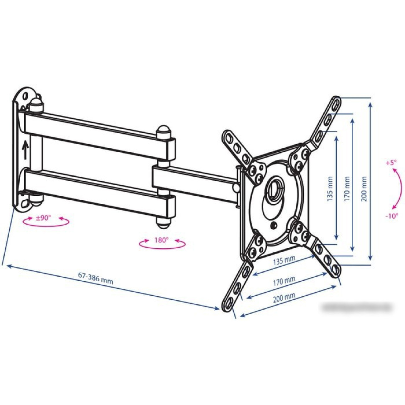 Расстояние от стены (потолка) 67 — 386 мм