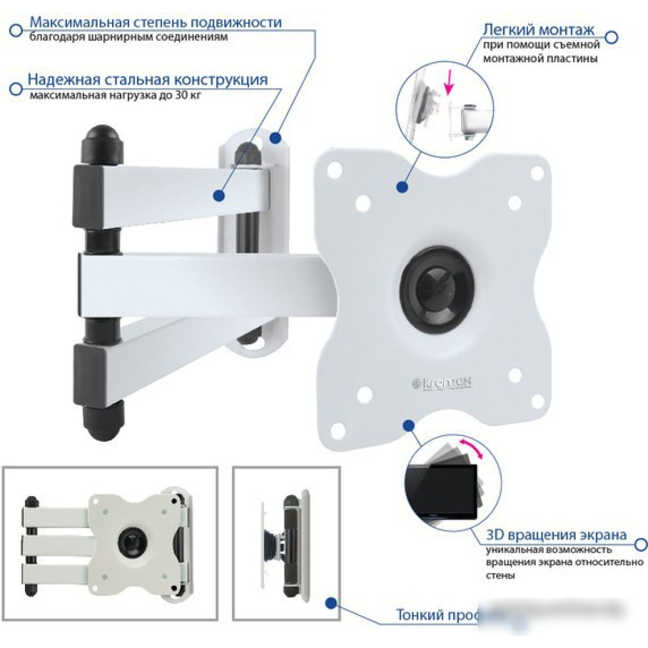 Основные характеристики Кронштейн Kromax DIX-15W (белый)