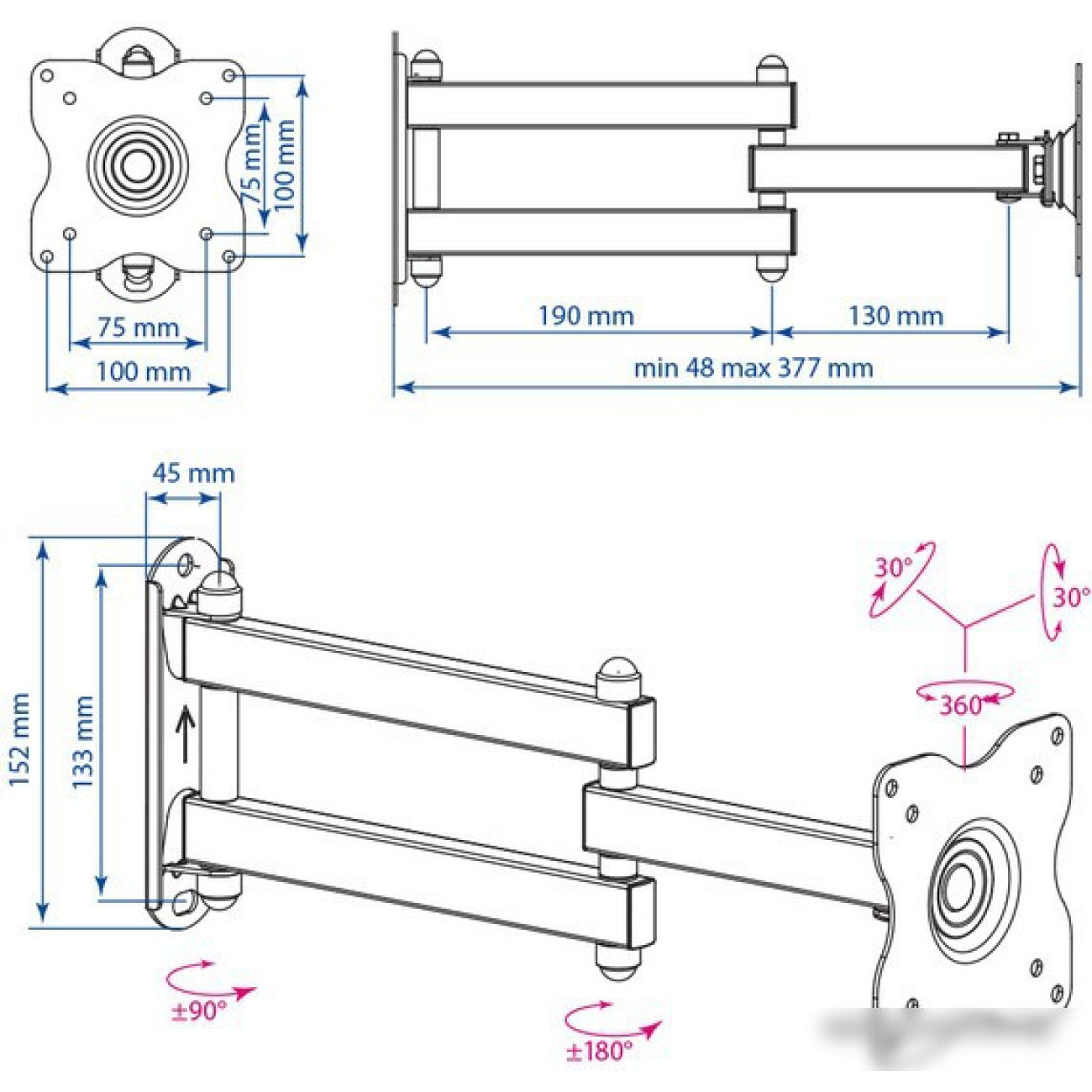 Расстояние от стены (потолка) 48 — 377 мм