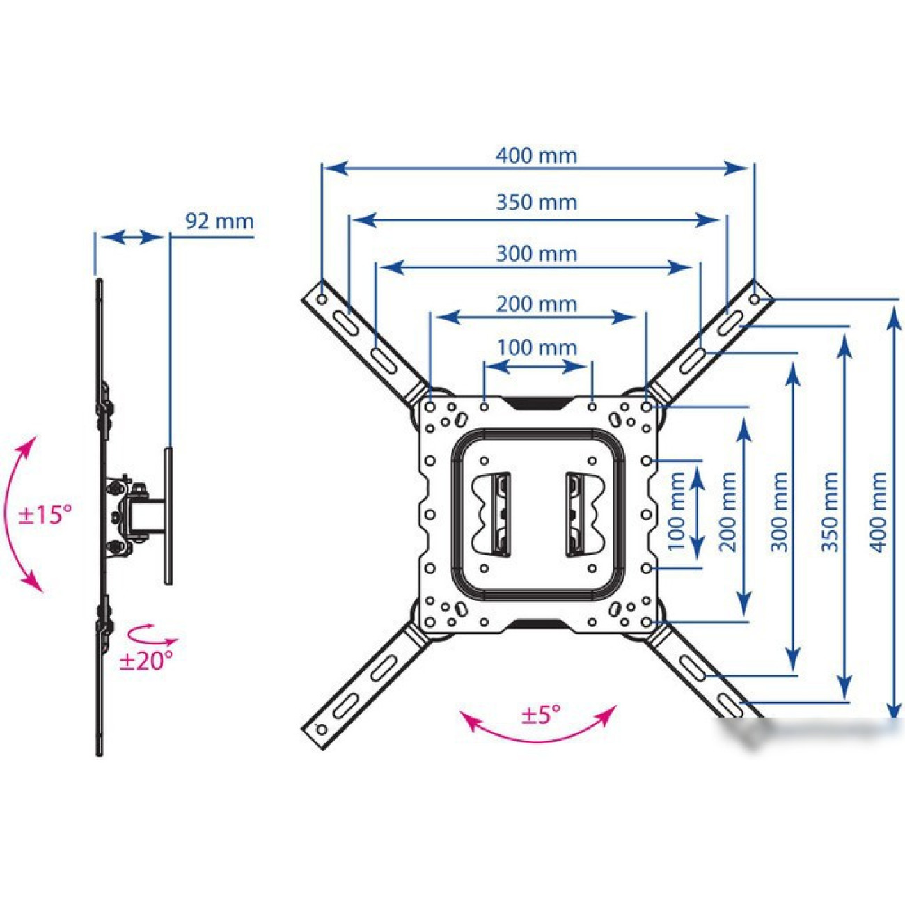 Расстояние от стены (потолка) 92 мм