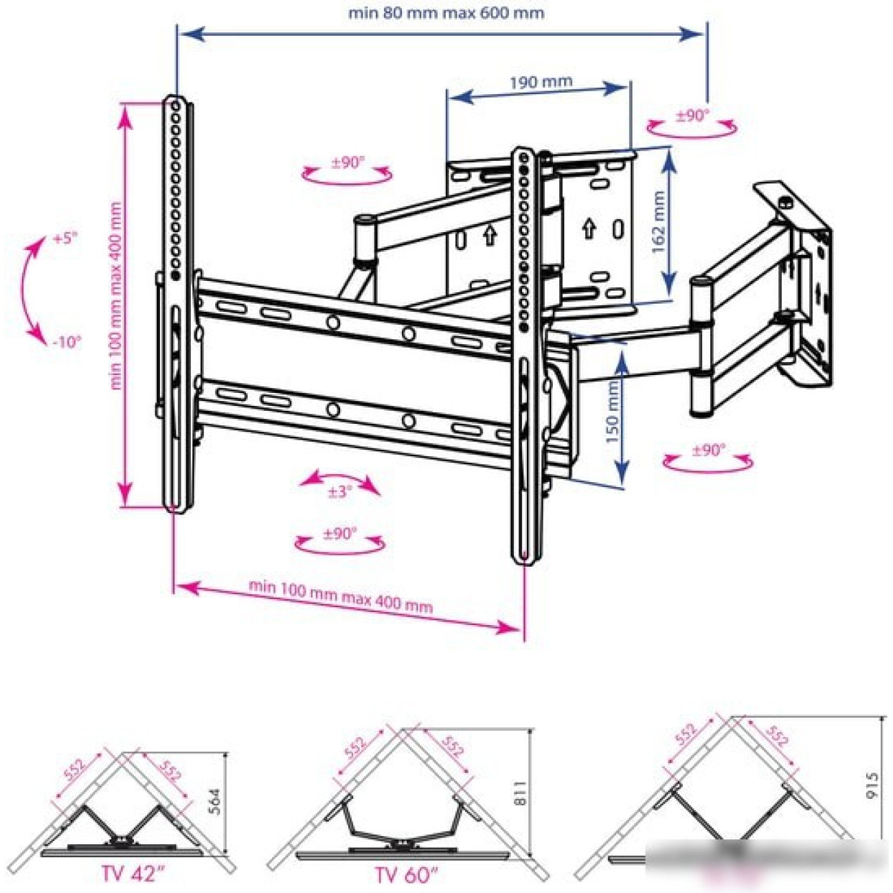 Расстояние от стены (потолка)80 — 600 мм