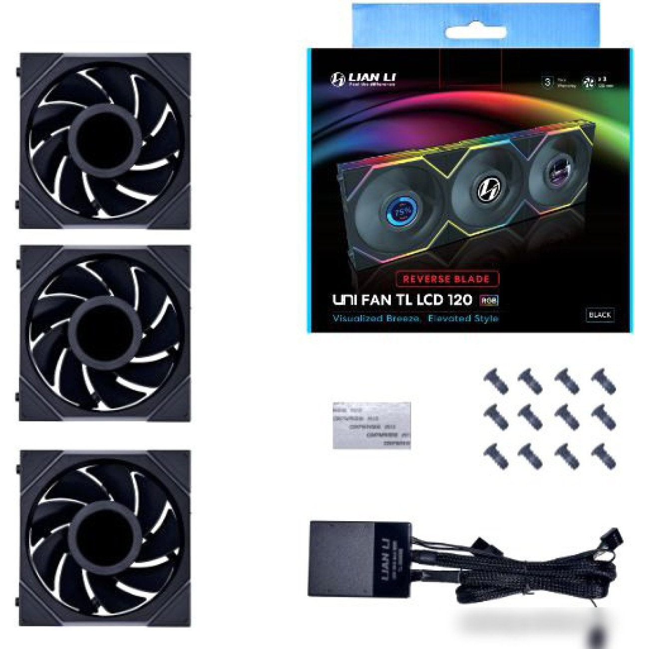 Основные характеристики Набор вентиляторов Lian Li Uni Fan TL LCD 120 Reverse Triple Pack G99.12TLLCD3B.00