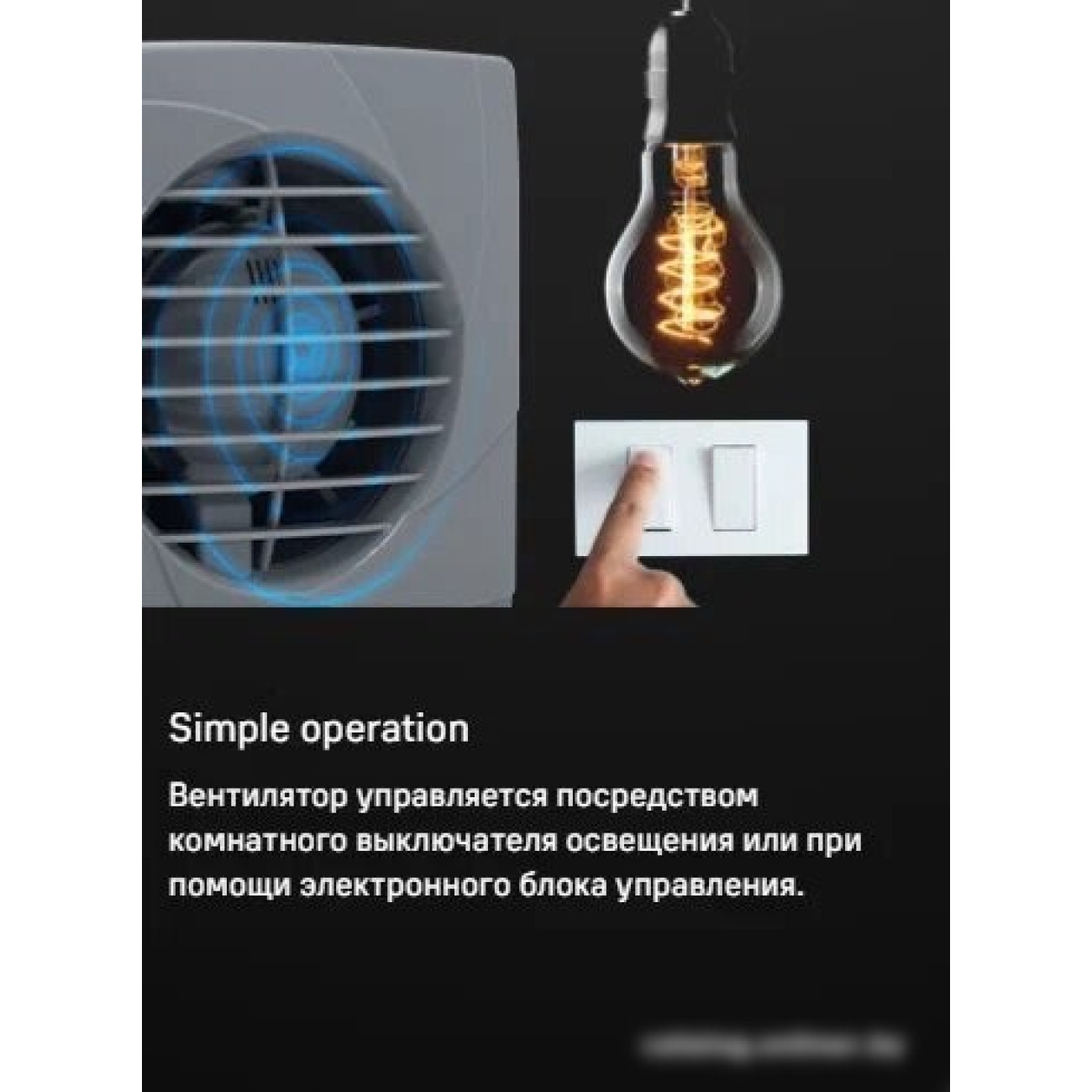накладной осевой вентилятор, потолочная/настенная установка, диаметр: 9.6 см, производительность: 95 куб.м/ч, 14 Вт, отдельная кнопка или выключатель света, серый