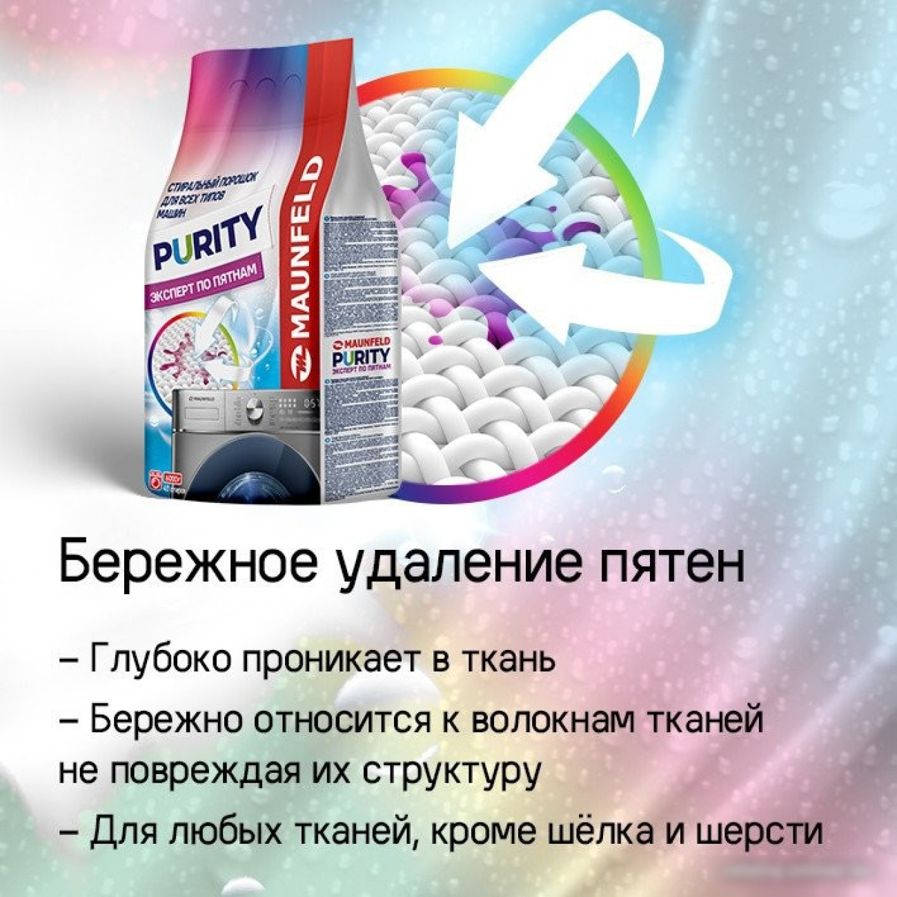 Основные характеристики Стиральный порошок MAUNFELD Purity Эксперт по пятнам Automat 9 кг