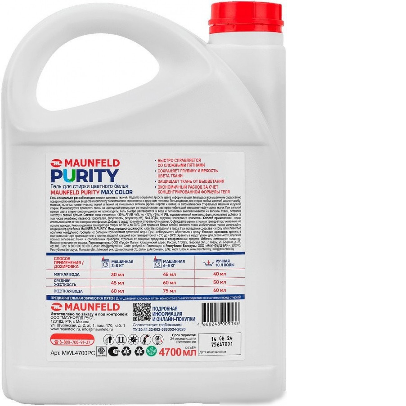 Описание Гель для стирки MAUNFELD Purity Max Color 4.7 л