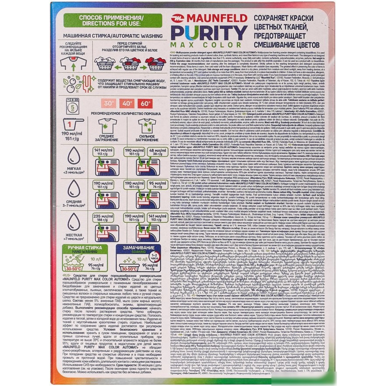 Описание Стиральный порошок MAUNFELD Purity Max Color Automat MWP450CA 450 г