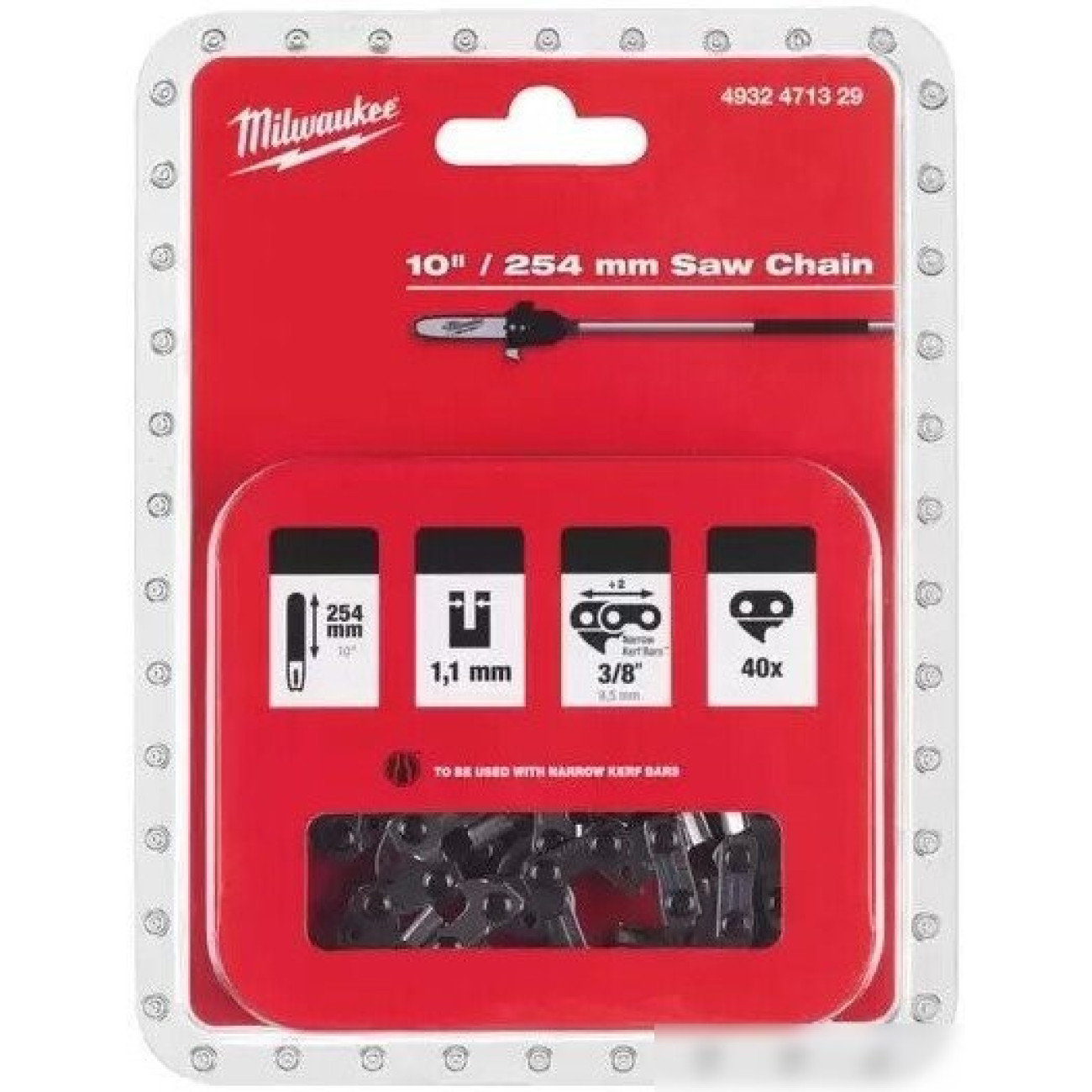 Основные характеристики Цепь для пилы Milwaukee 4932471329