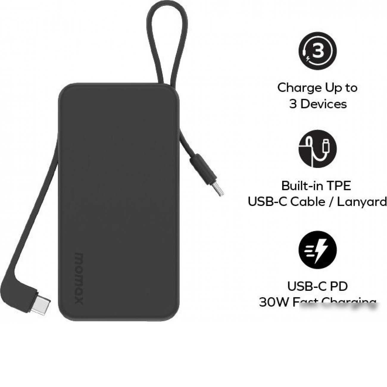 Основные характеристики Внешний аккумулятор Momax 1-Power Vital+ Built-In USB-C IP138 10000mAh (черный)