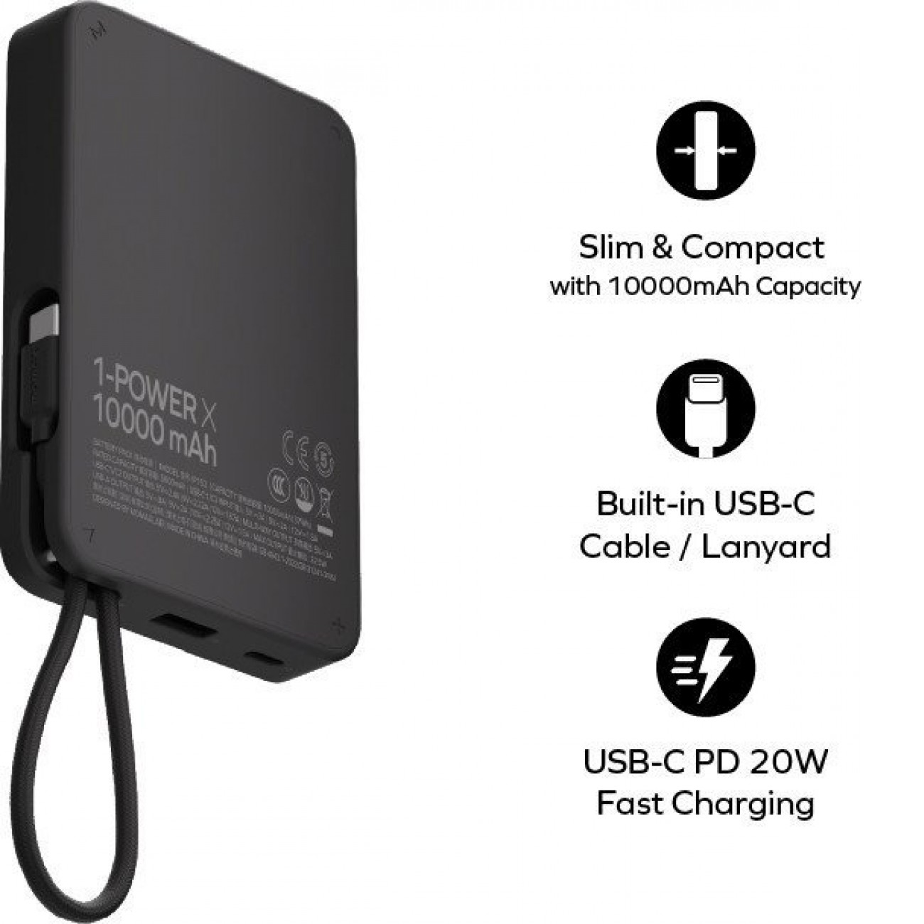 Код: 1-Power X Built-in USB-C IP152 10000mAh (черный)