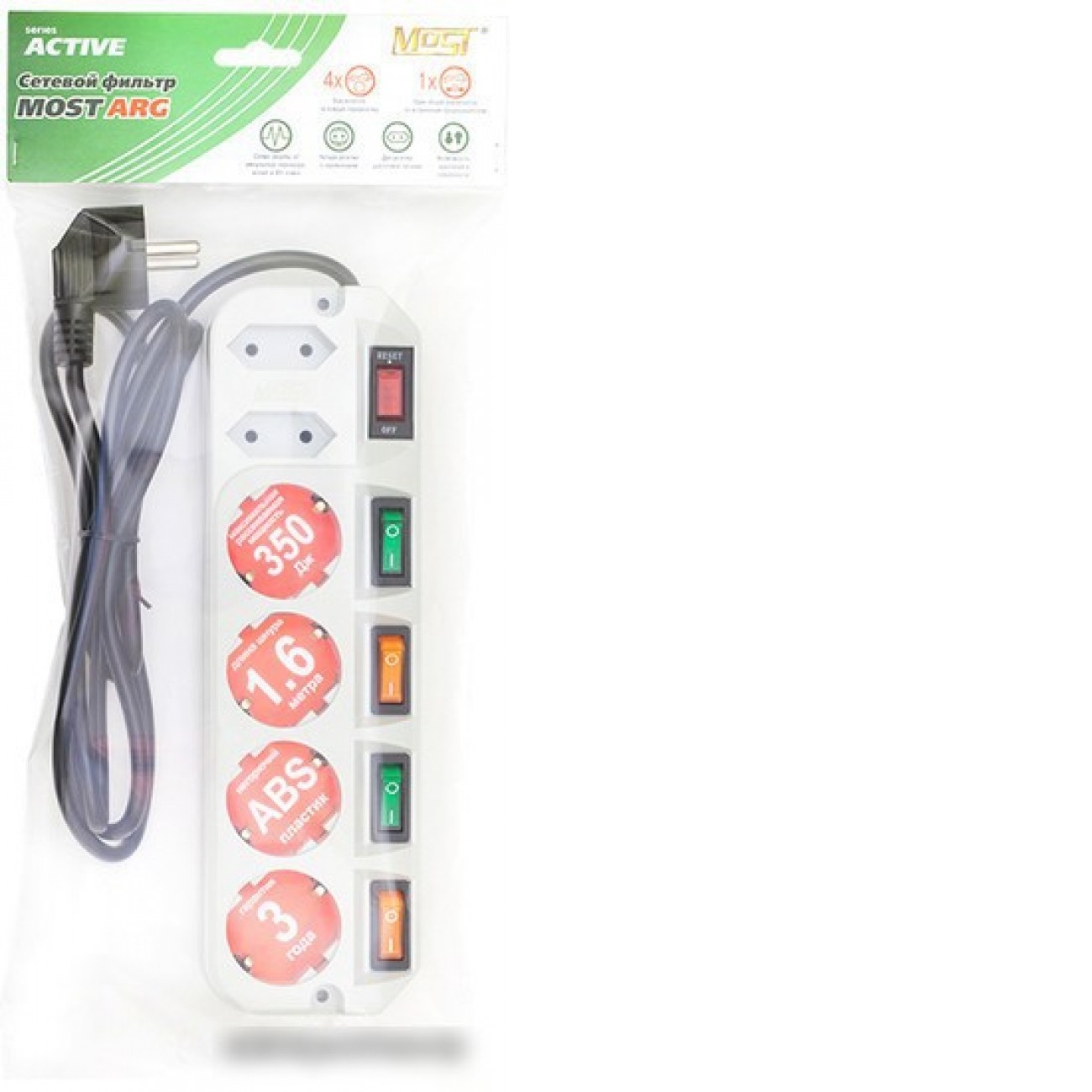 Основные характеристики Сетевой фильтр Most АRG 1.6 м (белый)