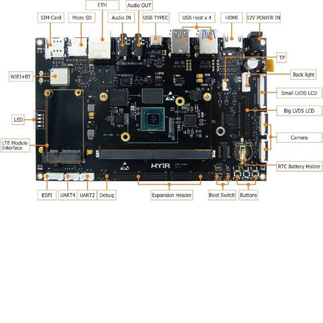 Описание Одноплатный компьютер Myir MYD-JX8MQ6-8E2D-130-E
