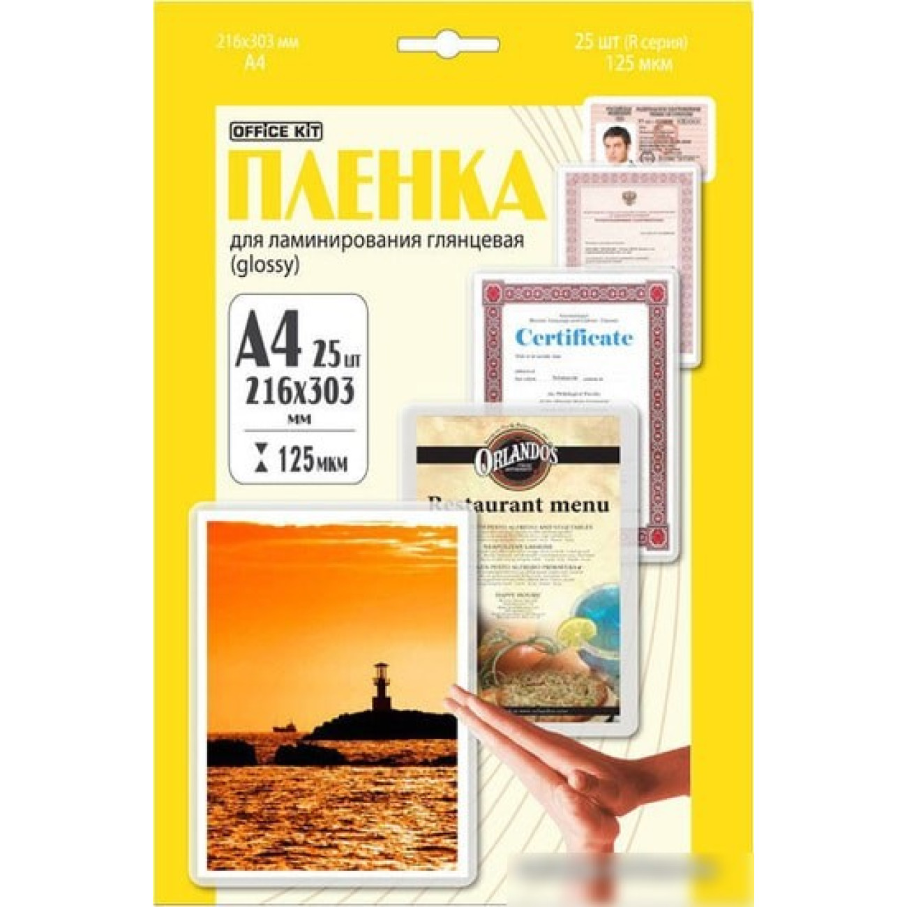 Основные характеристики Пленка для ламинирования Office-Kit глянцевая A4 125 мкм 25 шт LPA4125