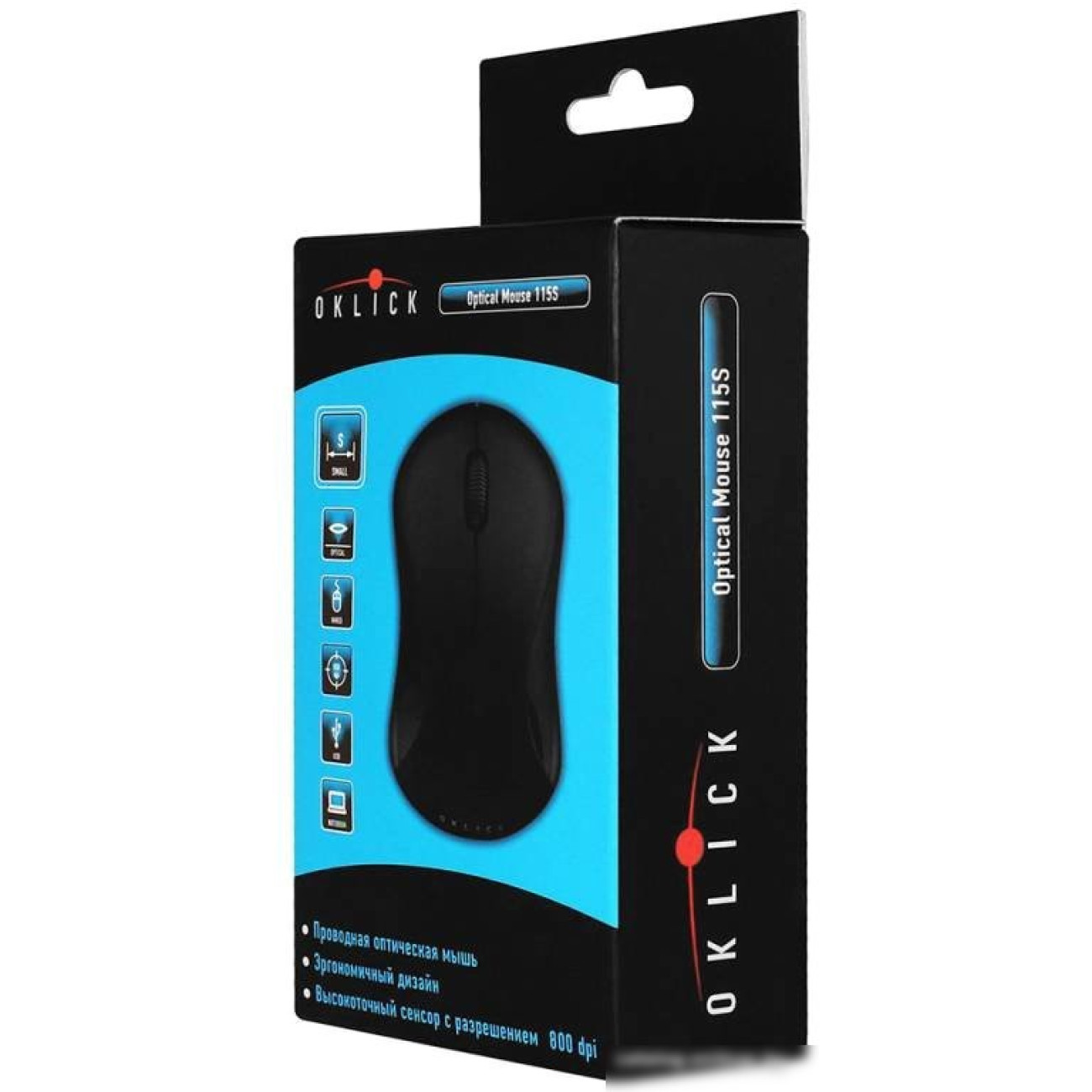 ноутбучная мышь, проводная USB Type-A, сенсор оптический 800 dpi, 3 кнопки, колесо с нажатием, цвет черный