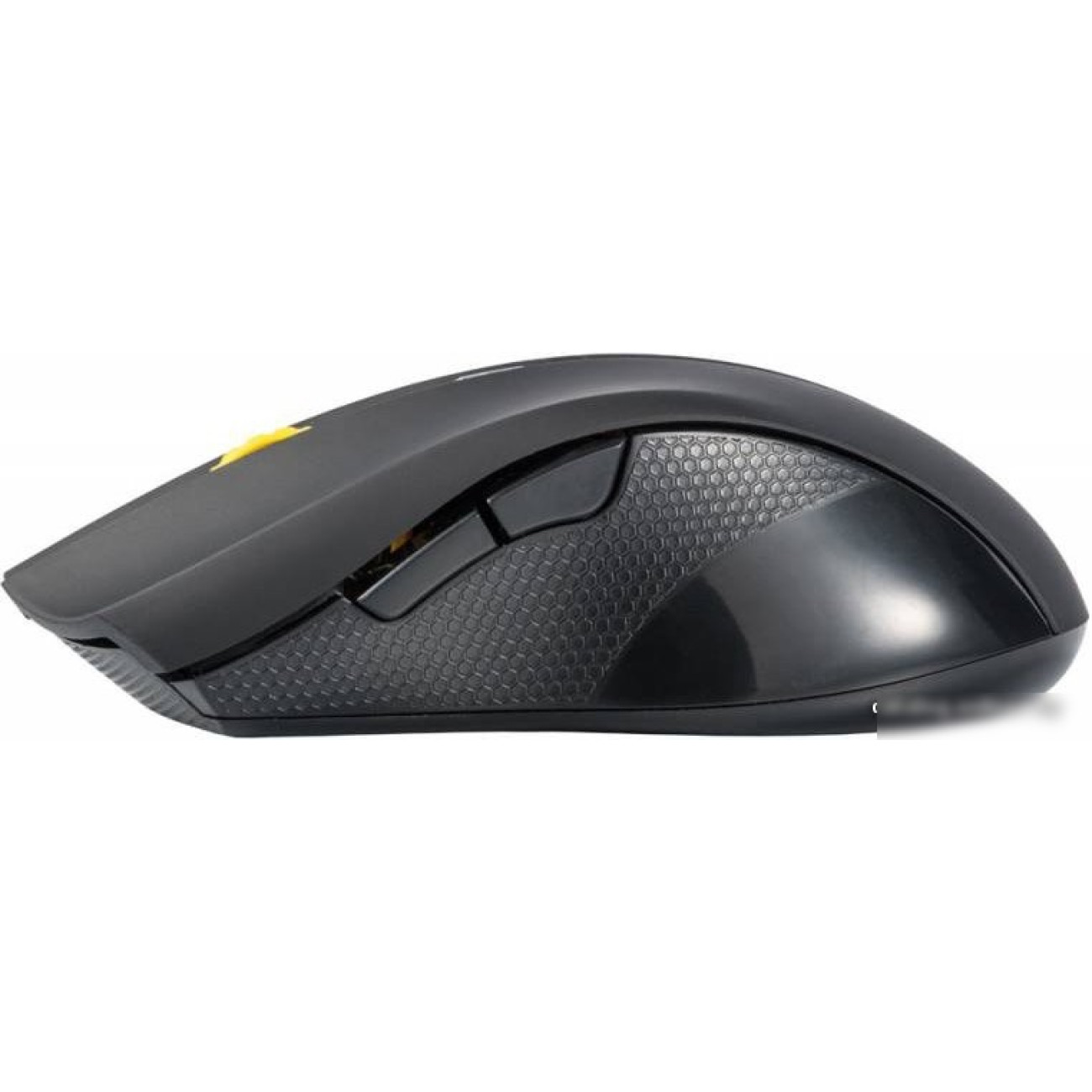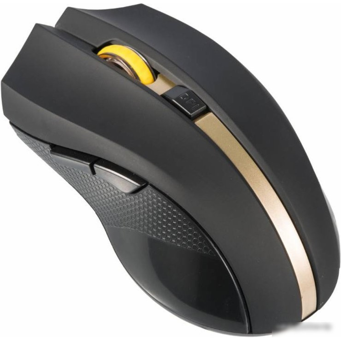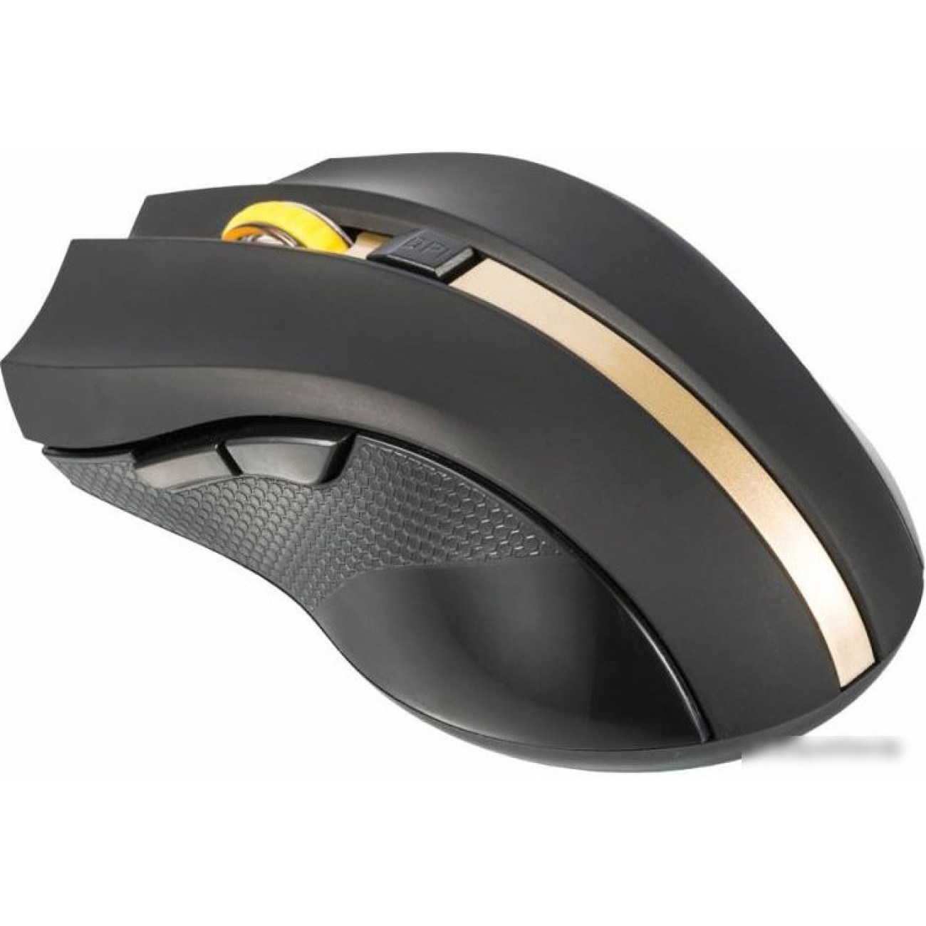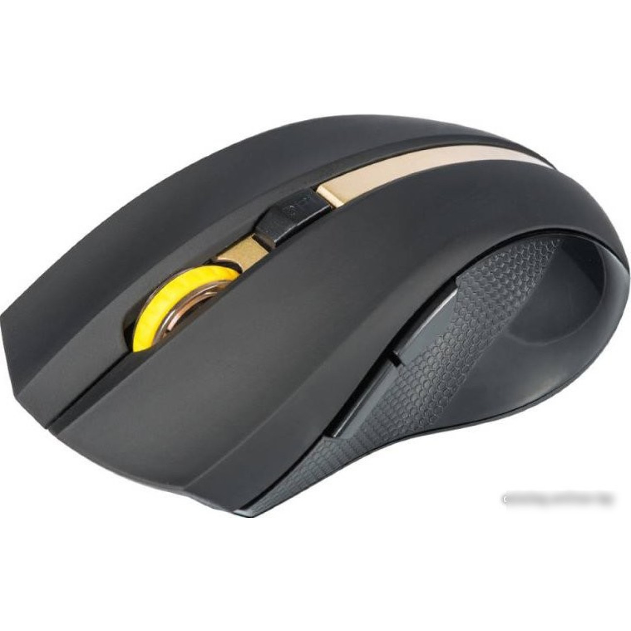 полноразмерная мышь, беспроводная радио, сенсор оптический 1600 dpi, 6 кнопок, колесо с нажатием, цвет черный/желтый/золотистый