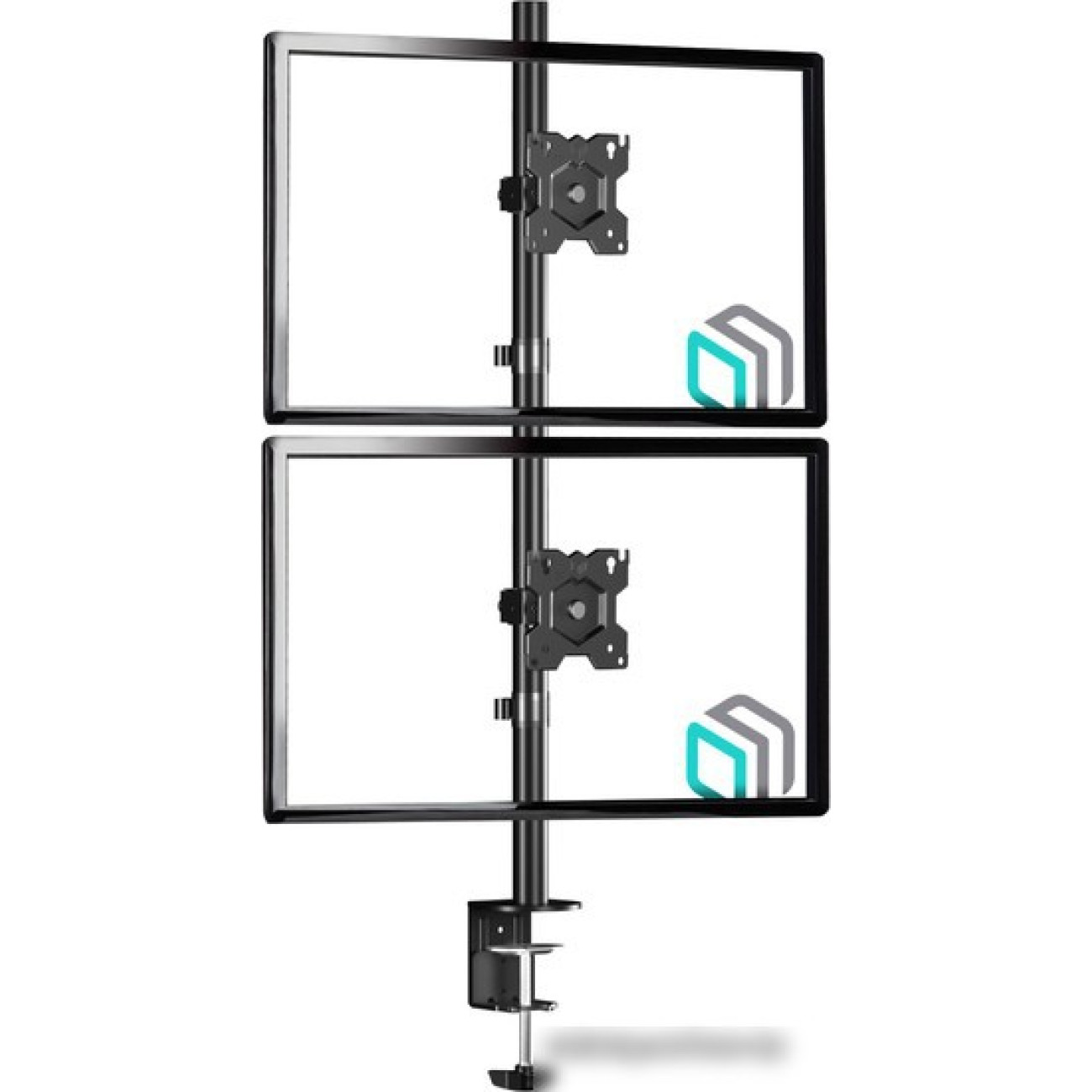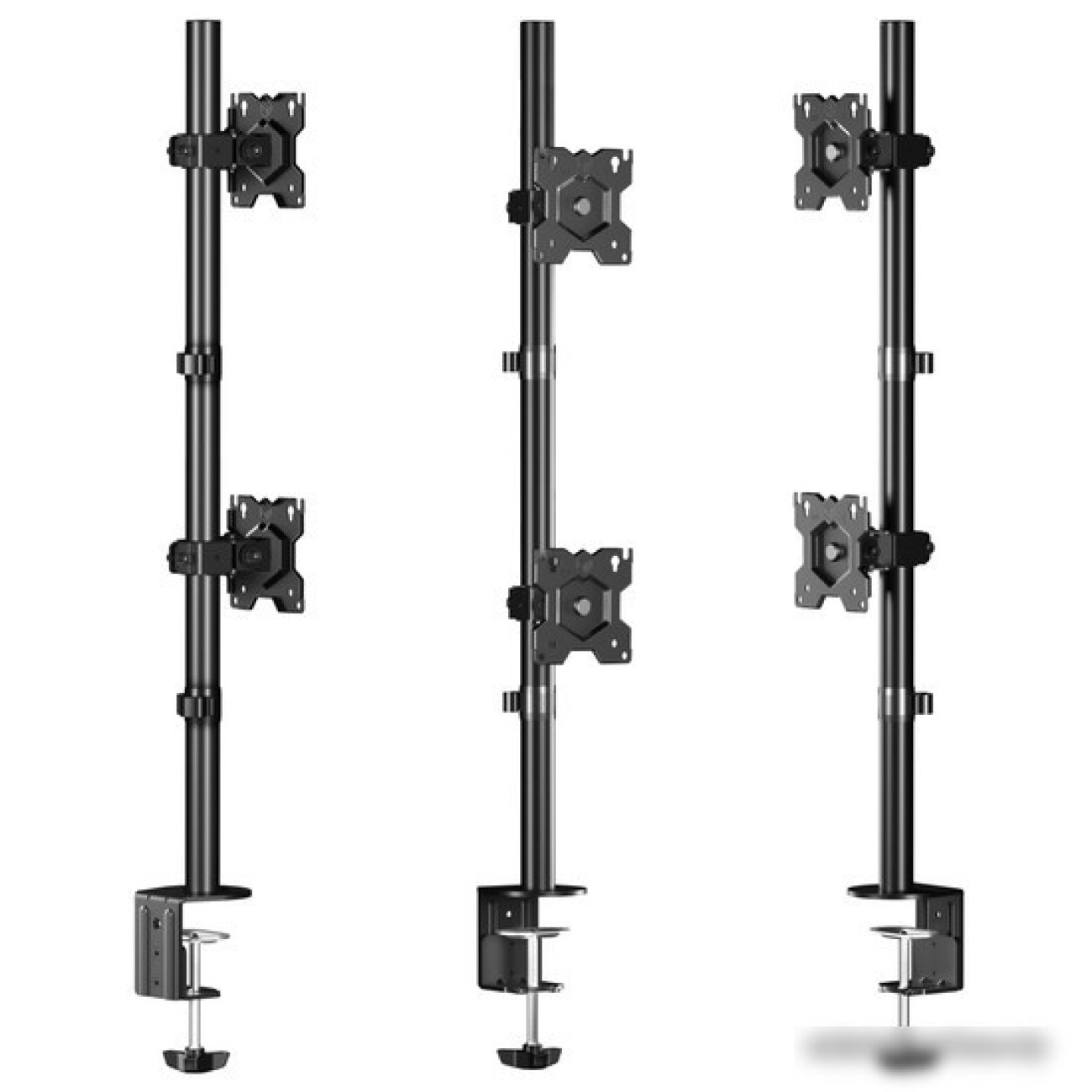для мониторов, 13-34", 2 монитора, настольный, поворотный, с регулировкой высоты, кабель-канал, струбцинное крепление, наклон 45°, поворот 180°, цвет черный