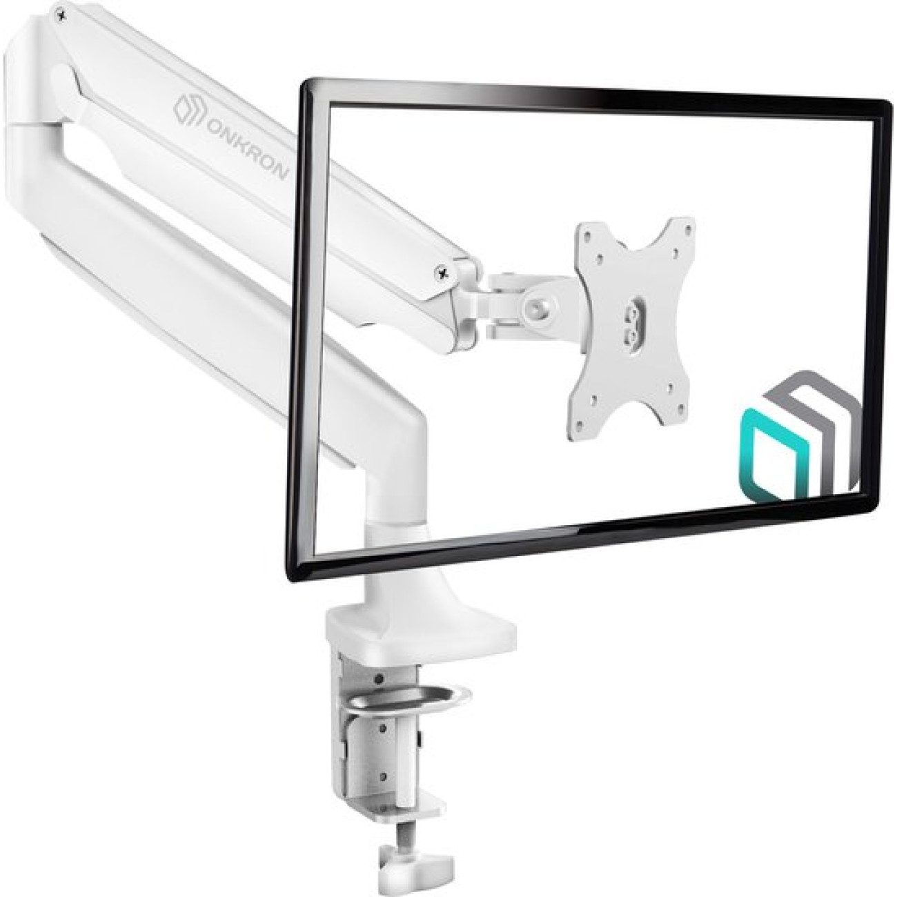 для мониторов, 17-32", 1 монитор, настольный, поворотный, с регулировкой высоты, кабель-канал, струбцинное крепление, наклон 45°, поворот 360°, регулировка высоты 170-505 мм, цвет белый