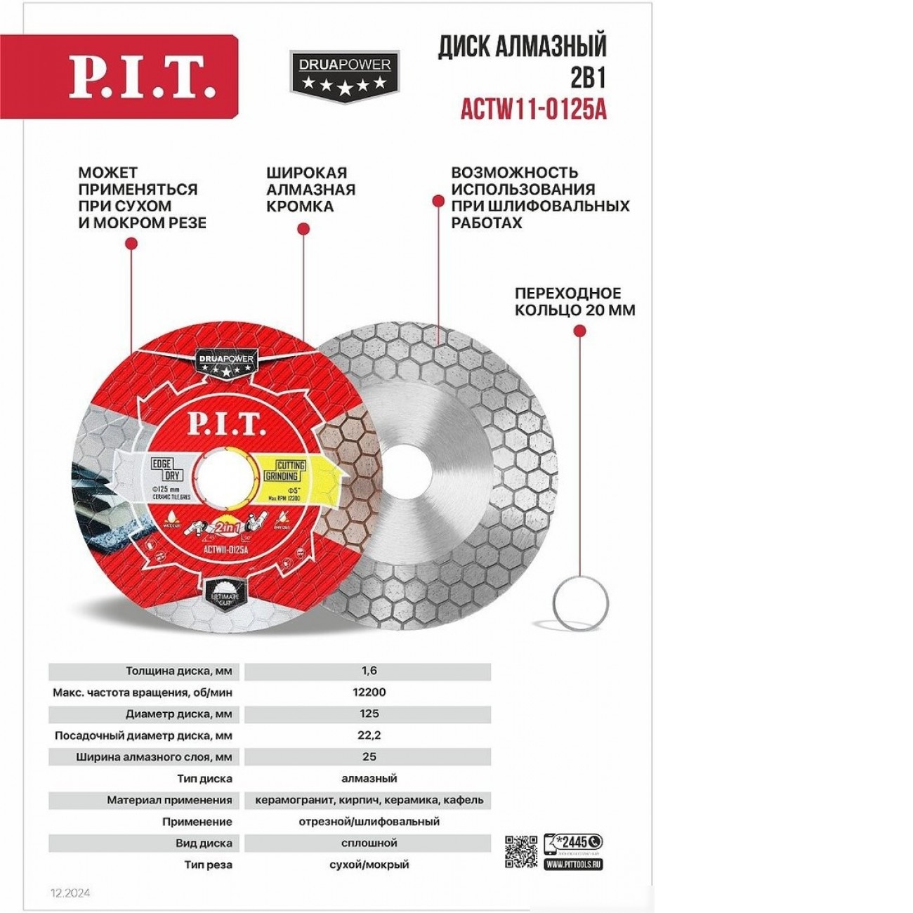 Основные характеристики Отрезной диск алмазный P.I.T. ACTW11-0125A