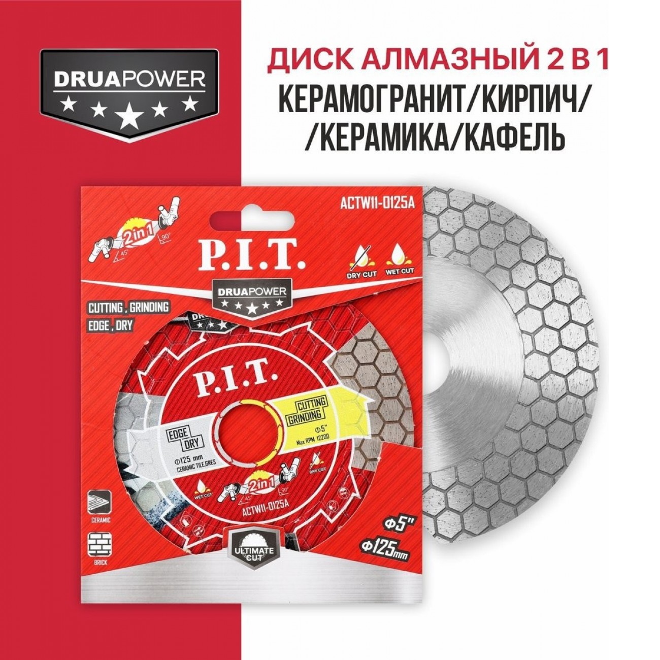 керамика/керамогранит/кирпич, 1 в наборе, 12200 об/мин, мокрая/сухая резка, 125 мм, посадочный диаметр 22.23 мм