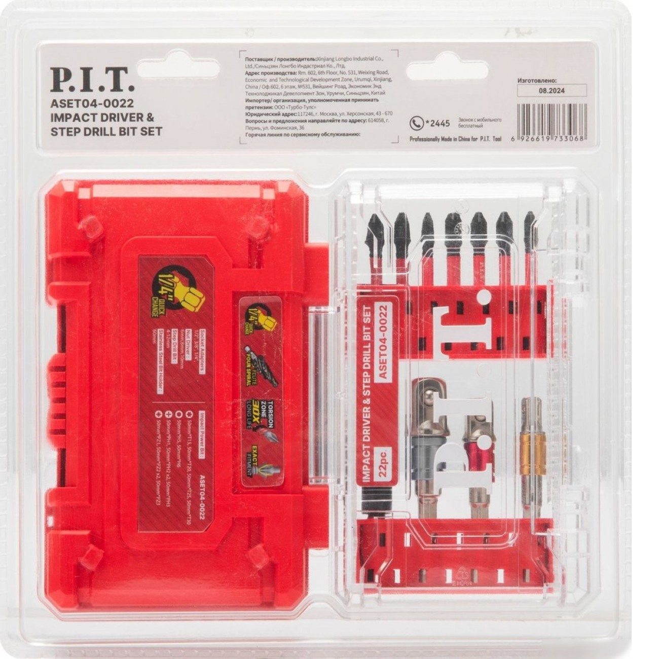 Основные характеристики Набор бит и сверл P.I.T. ASET04-0022