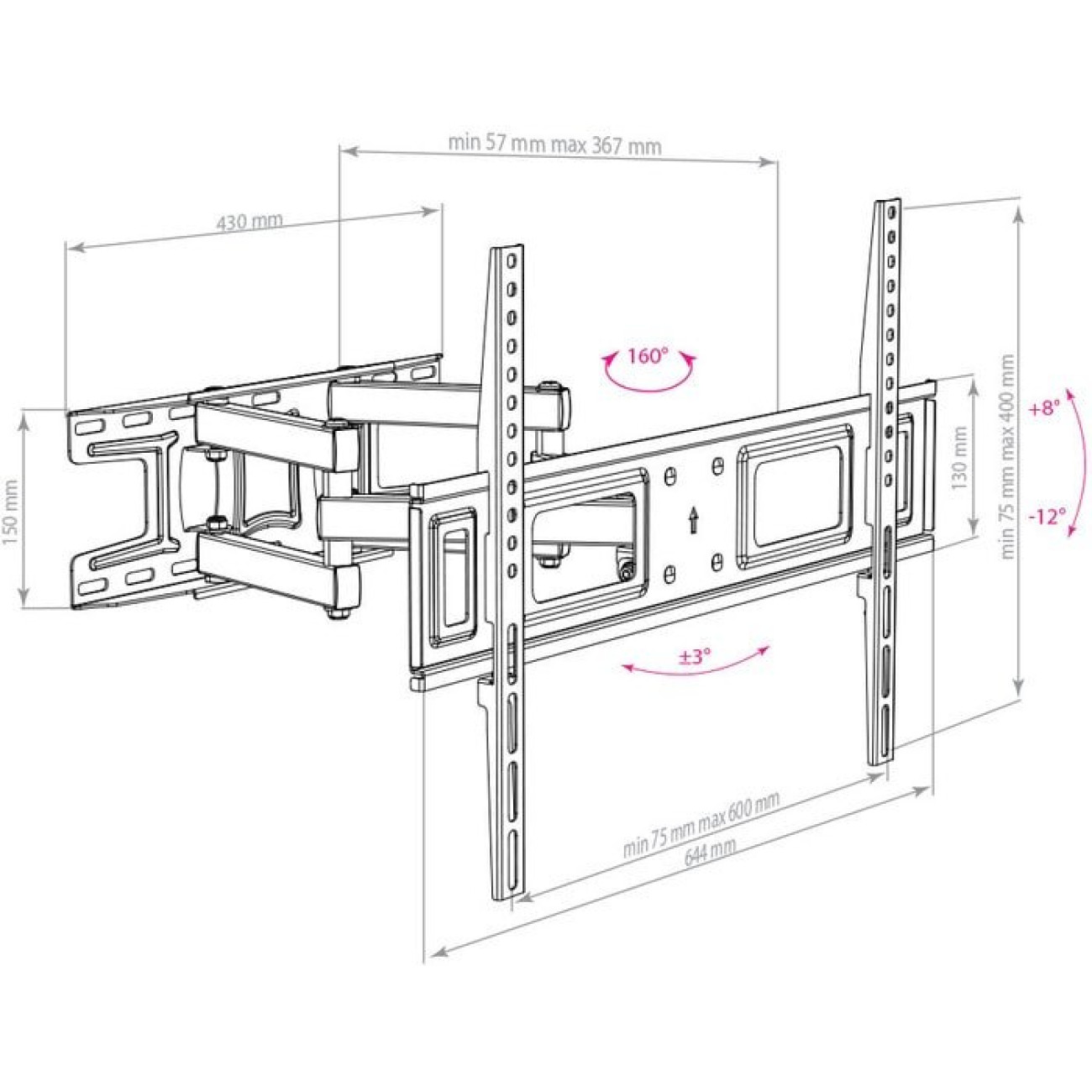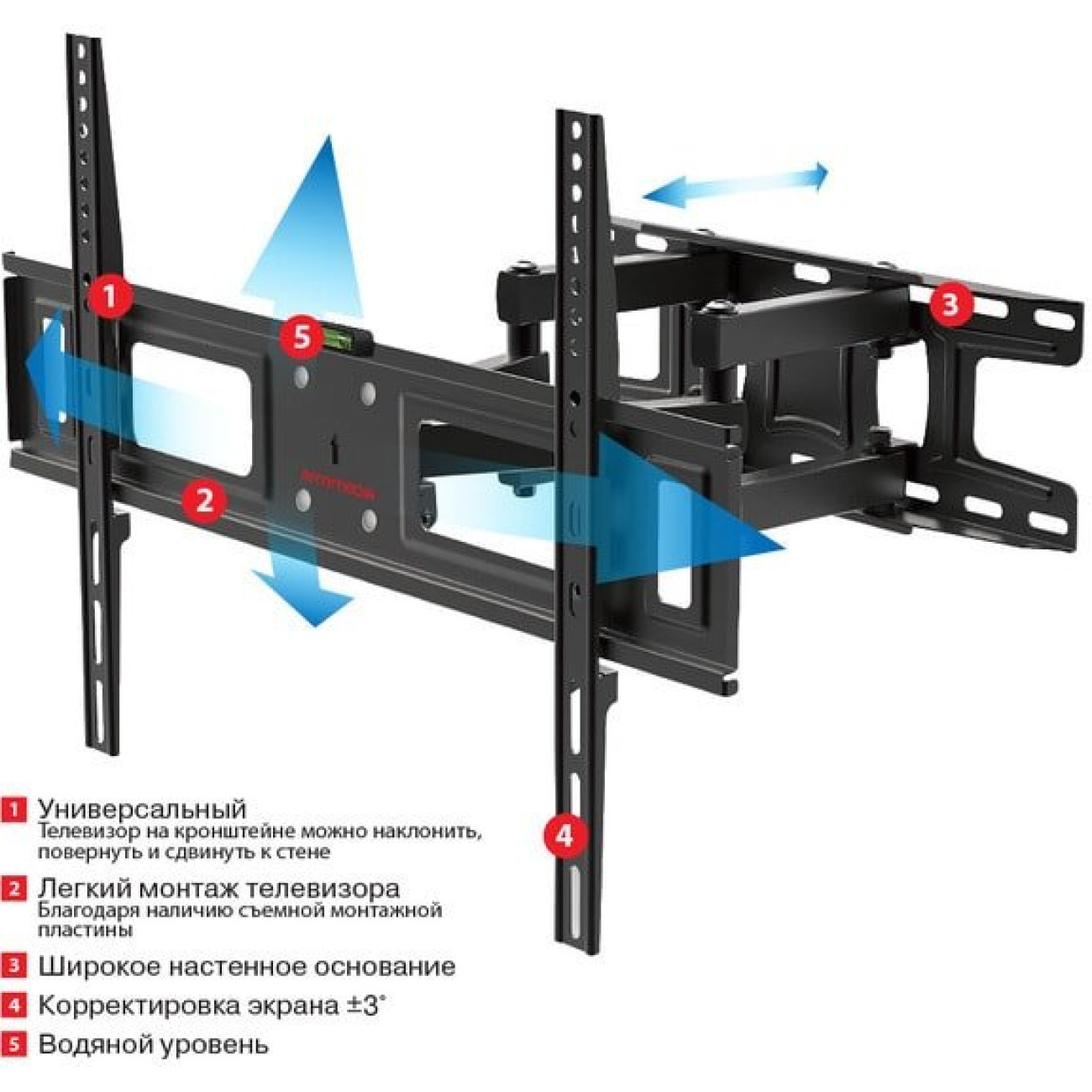 настенный кронштейн для ЖК-телевизора 32-65", наклон 12°, поворот 160°, цвет черный
