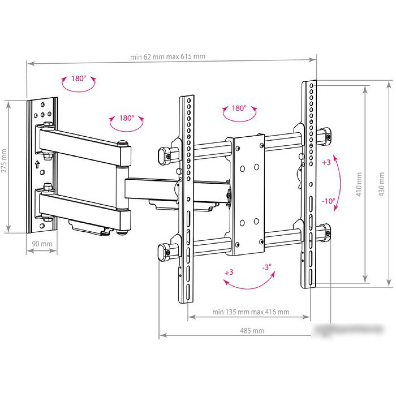 Расстояние от стены (потолка) 62 — 615 мм