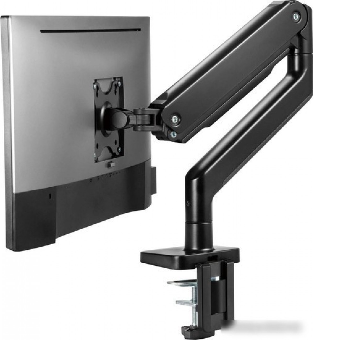 для мониторов, 17-45", 1 монитор, настольный, поворотный, с регулировкой высоты, кабель-канал, струбцинное крепление, наклон 90°, поворот 90°, цвет черный