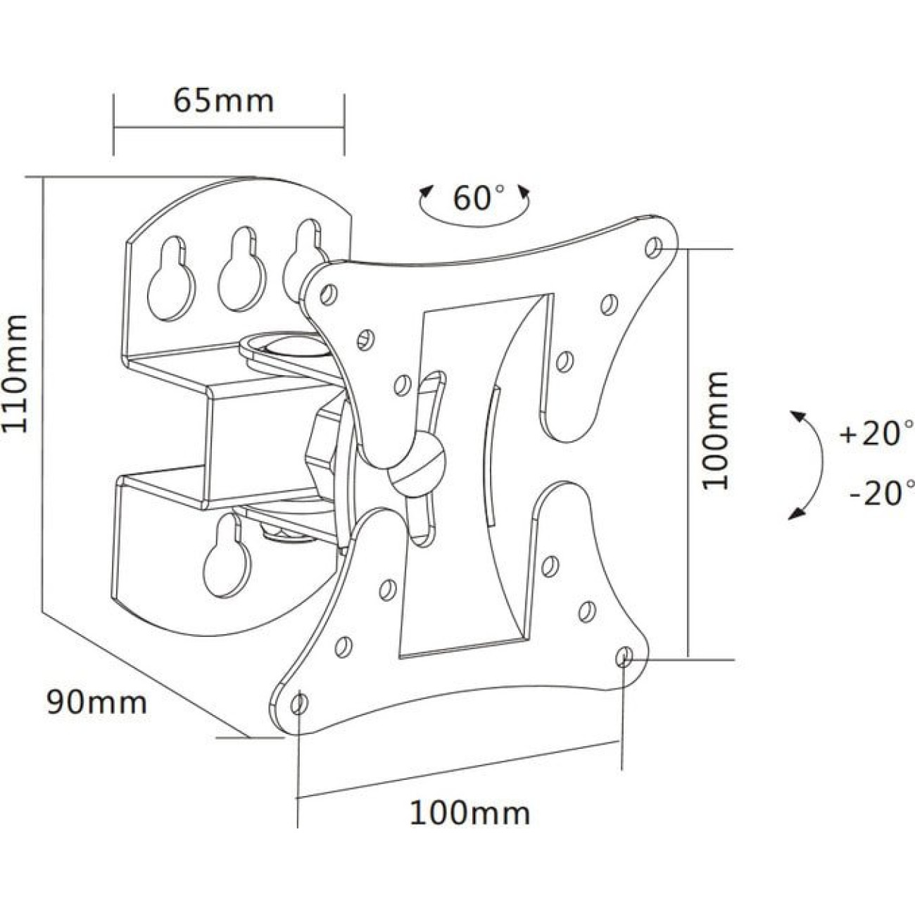 настенный кронштейн для ЖК-телевизора 13-27", наклон 20°, поворот 30°, цвет черный