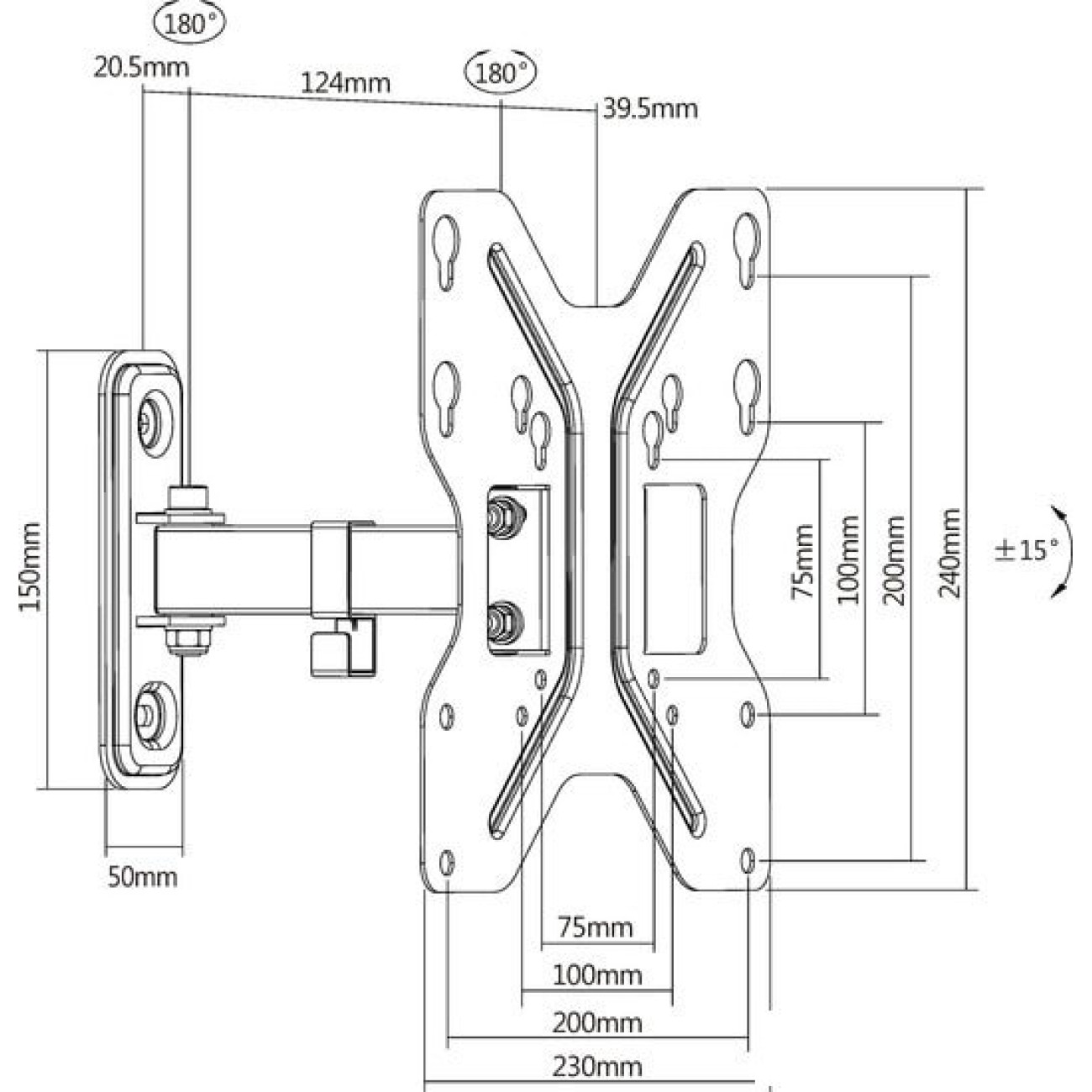 настенный кронштейн для ЖК-телевизора 23-43", наклон 15°, поворот 90°, цвет черный