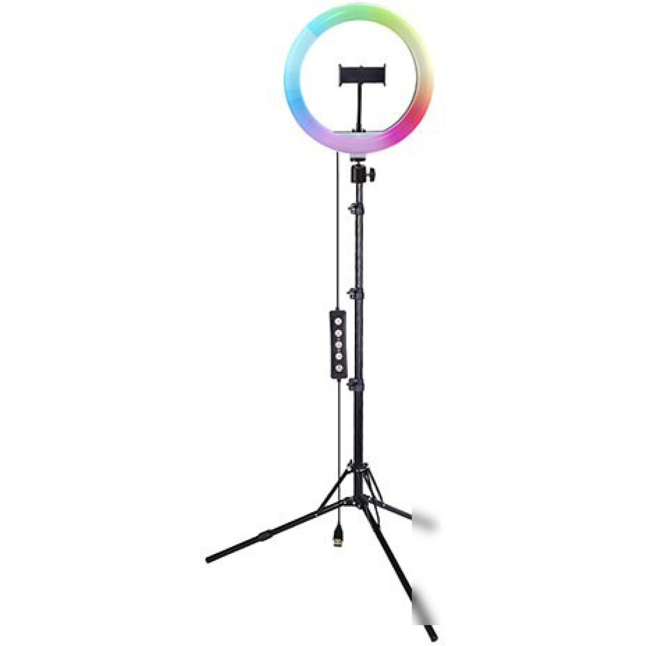 Комплектация- Кольцевая светодиодная лампа - Шнур питания с пультом и USB-разъёмом - Держатель для смартфона - Гибкое шарнирное крепление