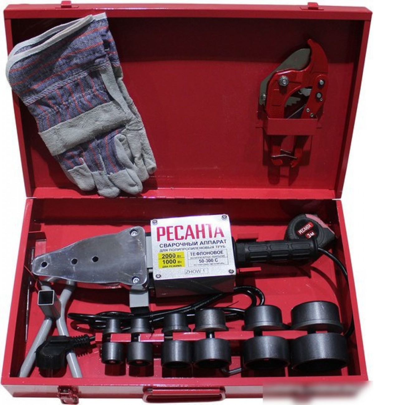 аппарат, 2000 Вт, мечевидный, 300 °C, термостат, насадки 20 мм/25 мм/32 мм/40 мм/50 мм/63 мм, труборез, кейс