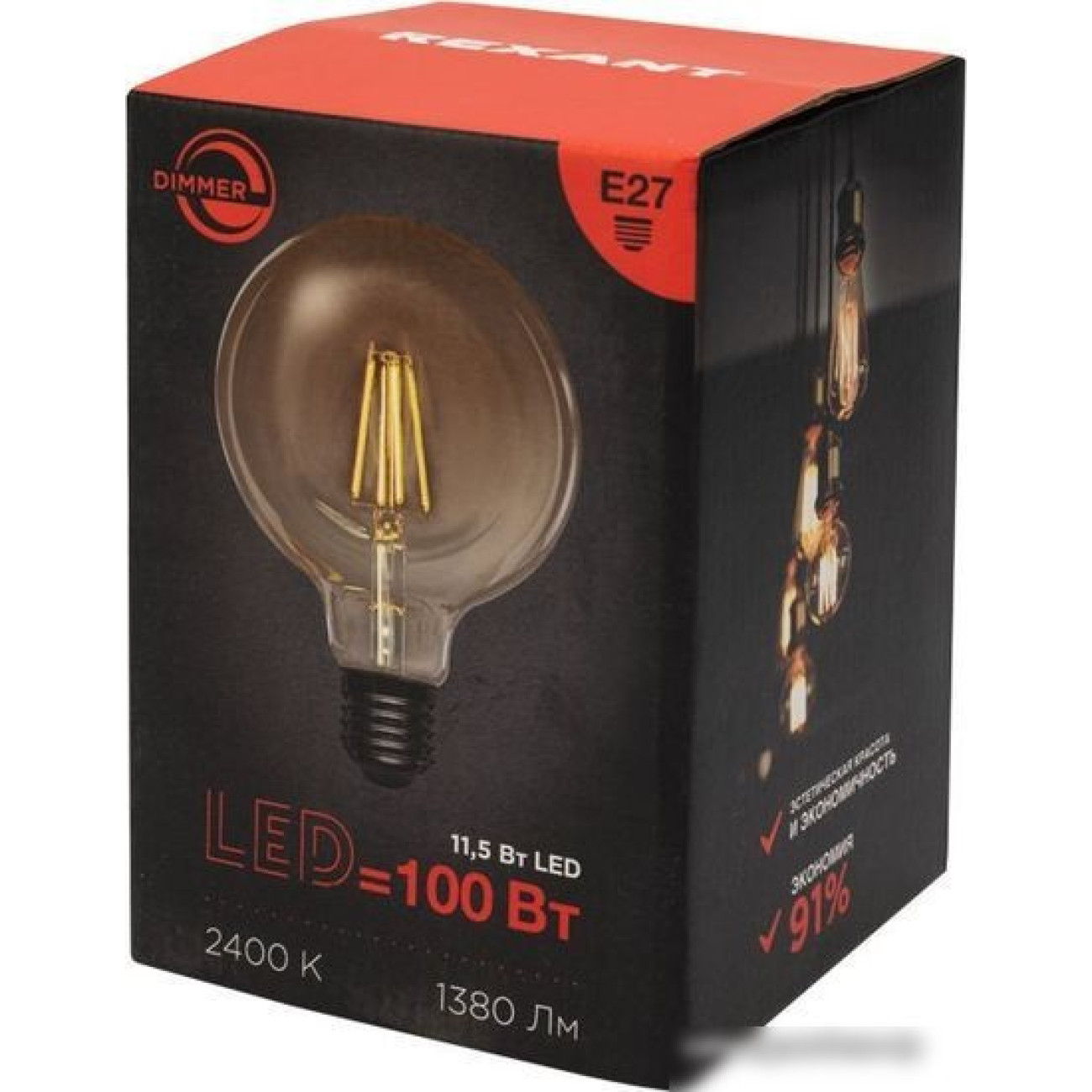Основные характеристики Светодиодная лампочка Rexant Loft GlobeA125 11.5Вт E27 1380Лм 2400K теплый свет 604-145